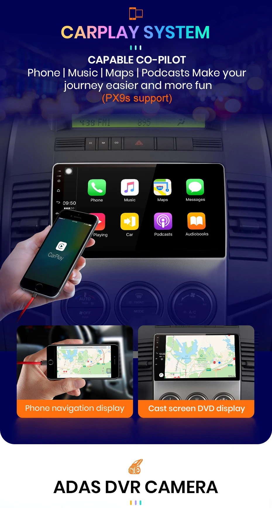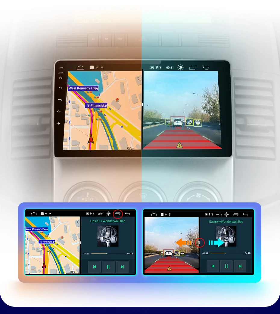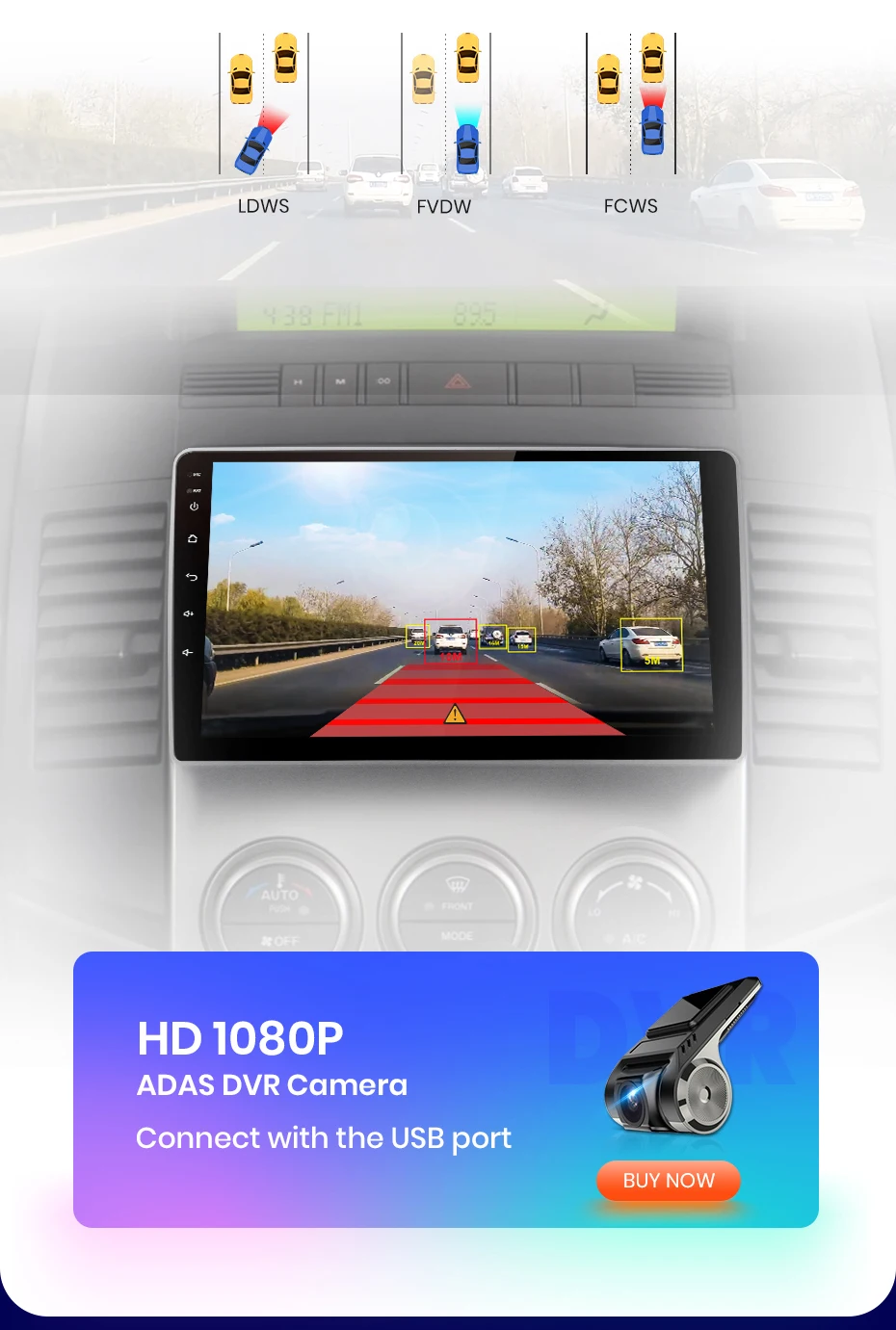 Когда автомобильное радио подключено к ADAS video recorder, это сделает передовую систему помощи при вождении, И предупредит вас, если ваш автомобиль слишком близко к переднему автомобилю или если ваш автомобиль отклоняется от полосы движения, чтобы помочь вашему вождению безопаснее и проще.