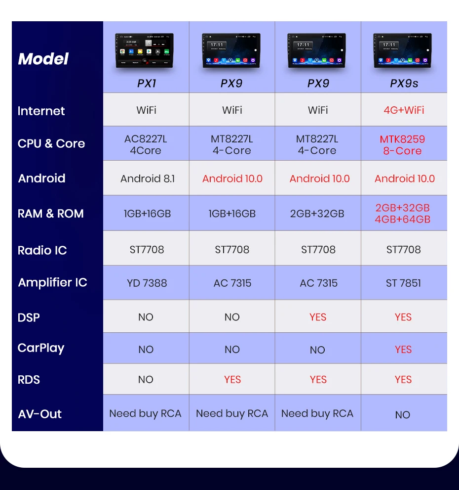 Устройство оснащено Навигатором, воспроизведением музыки, функцией парковки и т. д. для подключения к Интернету версии Wi-Fi должны служить вашим смартфоном в качестве точки доступа. Для владельцев автомобилей, которые часто используют Интернет во время путешествия, мы рекомендуем купить версии 4G.