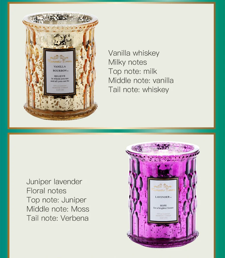 Материал: кокосовое воск Содержание: 2 шт Свеча/набор, если вам нужно два разных аромата, пожалуйста, оставьте сообщение Узор: как на картинке После продажи: высокое качество изображения и видео могут быть предоставлены. Применение: бары, дома, спа, свадьбы, дня рождения Название продукта: ароматическая свеча Посылка: независимая коробка Если вам нужны два разных аромата, пожалуйста, оставьте сообщение