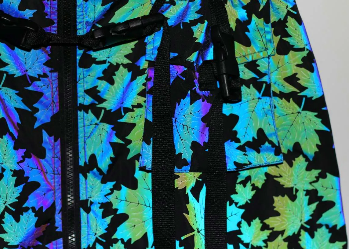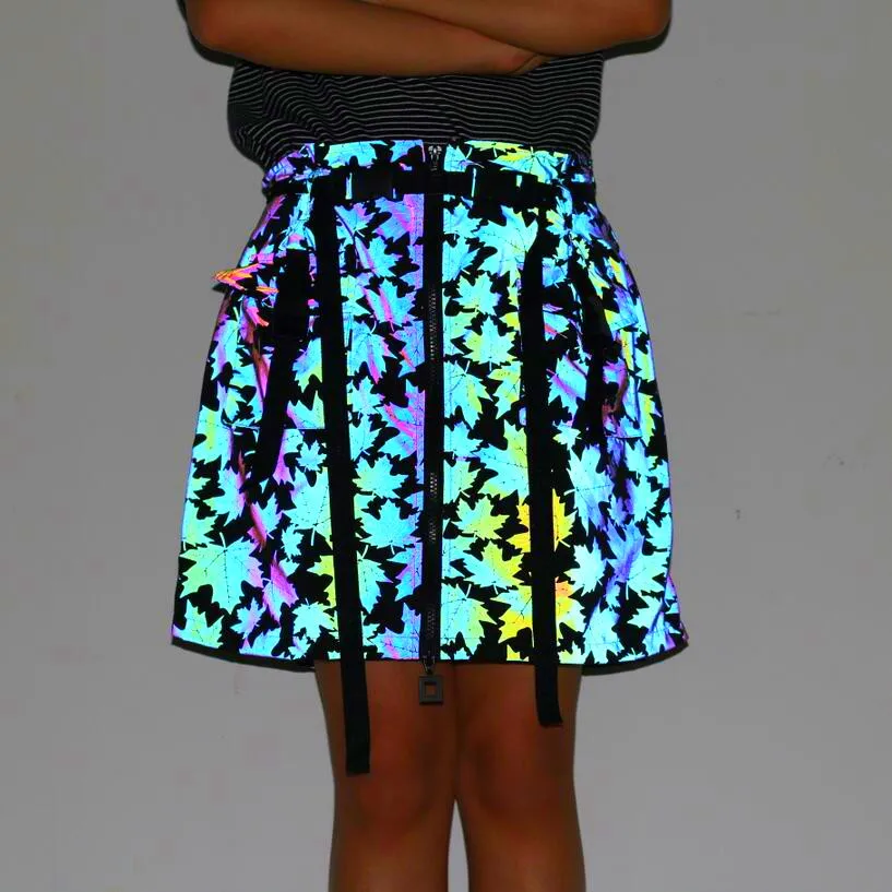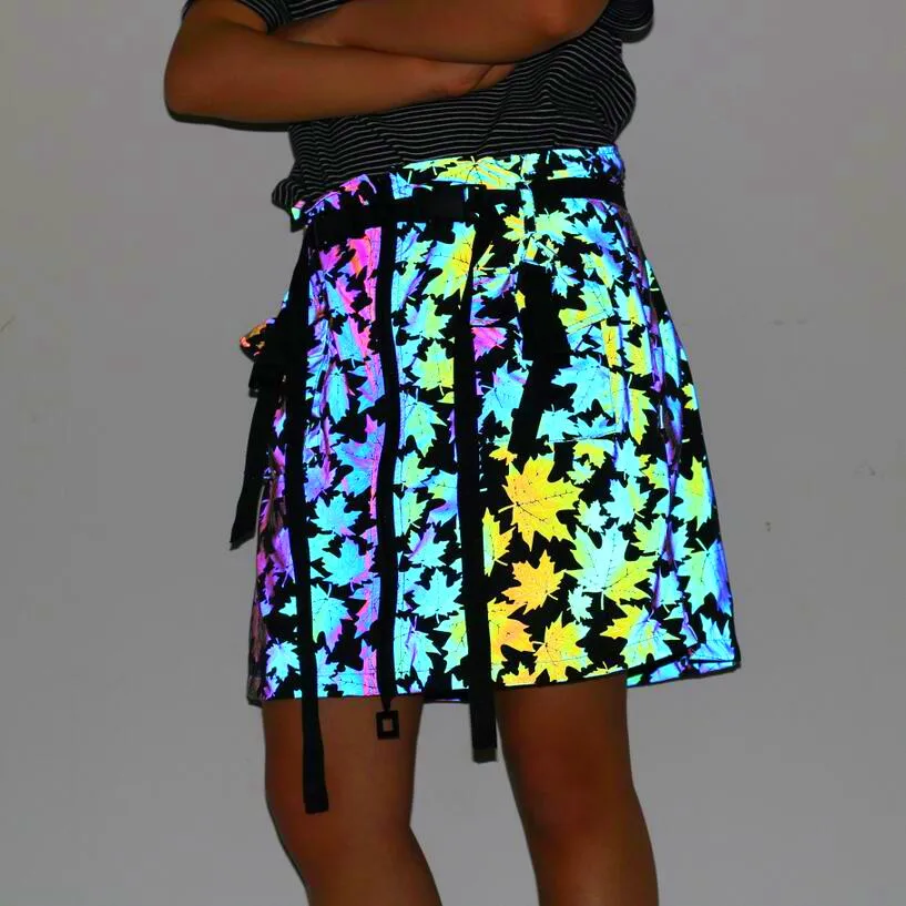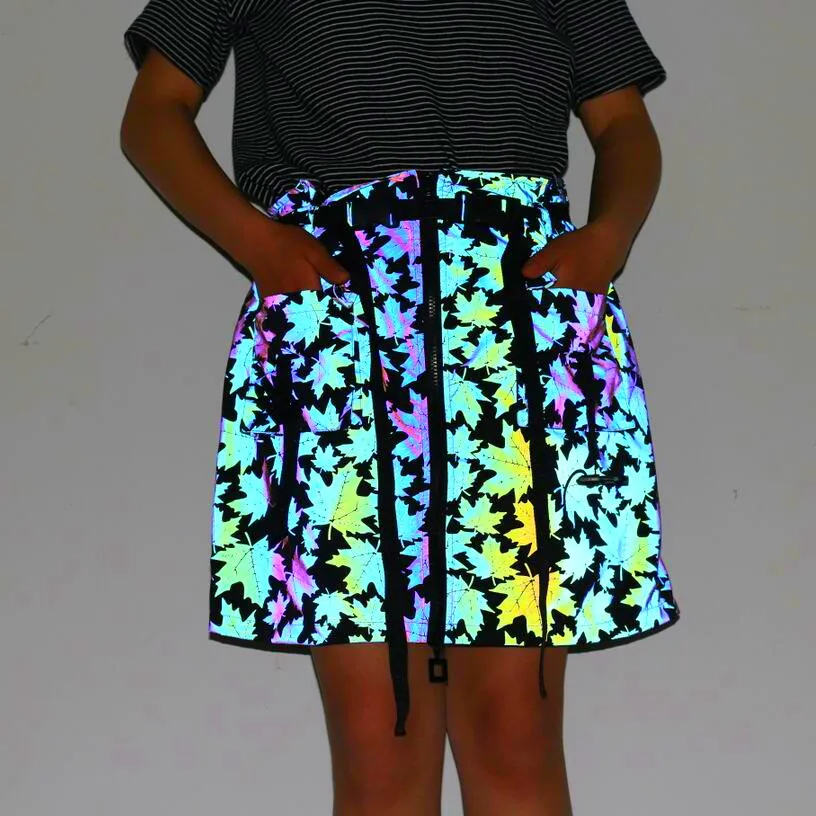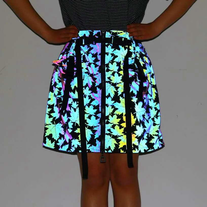 Яркая Светоотражающая юбка-трапеция, светящаяся кленовый лист, в стиле хип-хоп, для ночного клуба, танцевальная одежда с лентой, поясом и передними карманами, уличная одежда Размер (единица измерения: см) (1 см = 0,39 дюйма, 1 дюйм = 2,54 см) S: длина 43,5, обхват талии 76, обхват бедер 103 М: длина 44,5, обхват талии 80, обхват бедер 107 L: длина 45,5, обхват талии 84, обхват бедер 110 XL: длина 46,5, обхват талии 88, обхват бедер 114