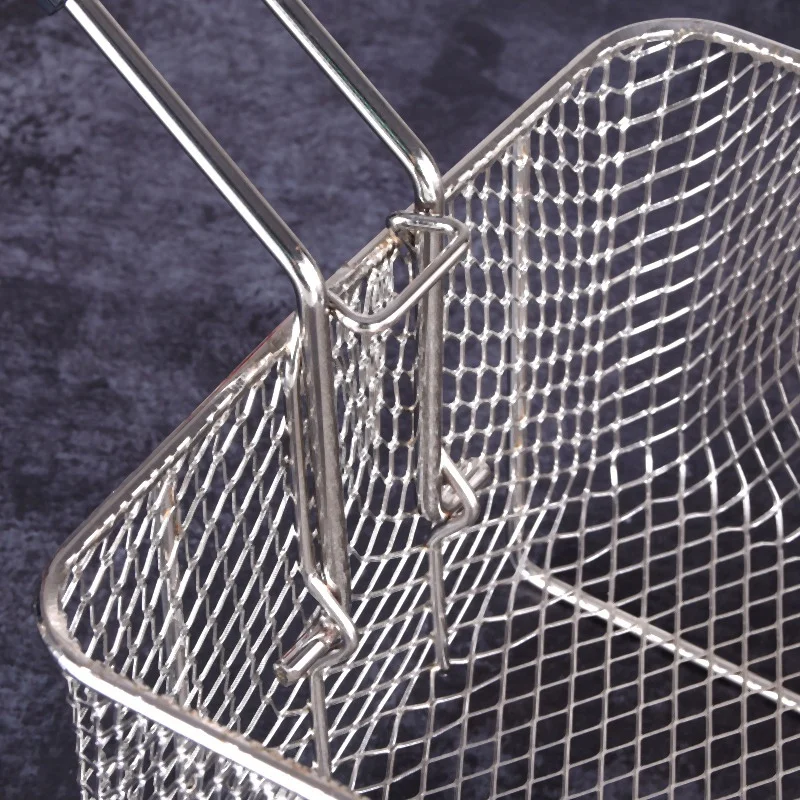 Прямоугольная сетчатая корзина из нержавеющей стали с длинной ручкой для жарки