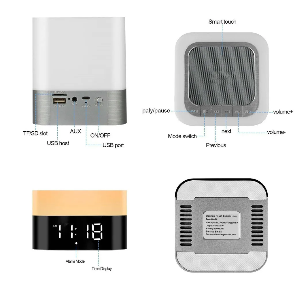 5 В одном супер многофункциональный: датчик касания Ночной светильник + Bluetooth 4,0 Hifi Динамик + цифровой будильник + MP3-плеер + свободные руки. Подключение С Bluetooth