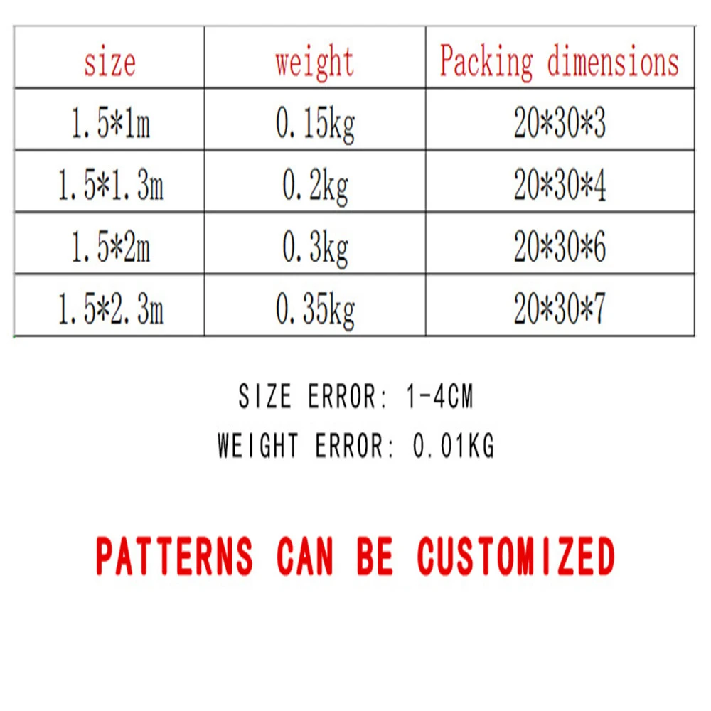 Из-за ручного измерения, пожалуйста, учитывайте погрешность в 1-3 см Дисплей и световые эффекты отличаются, поэтому фактический цвет немного отличается от цвета, показанного на картинке Цифровая печать не выцветает и не деформируется