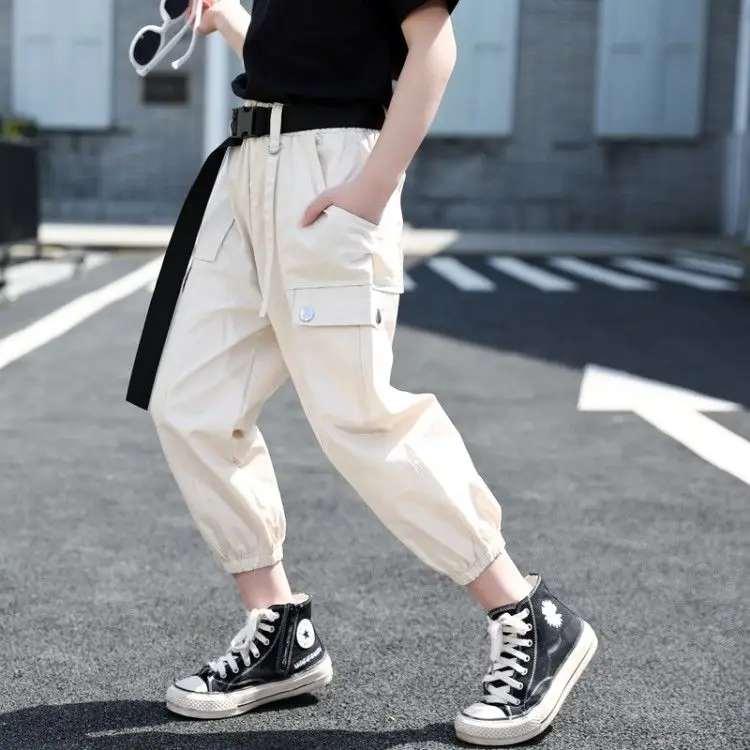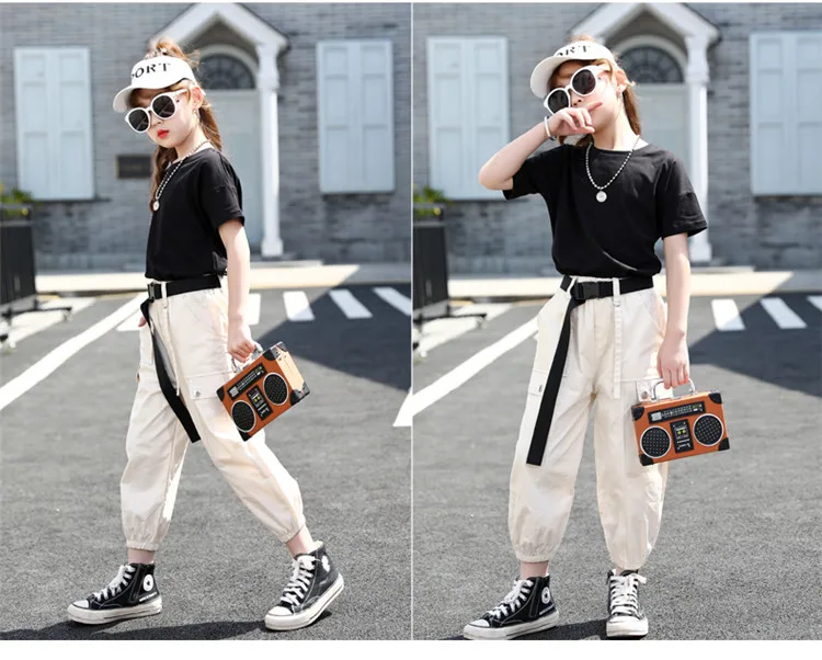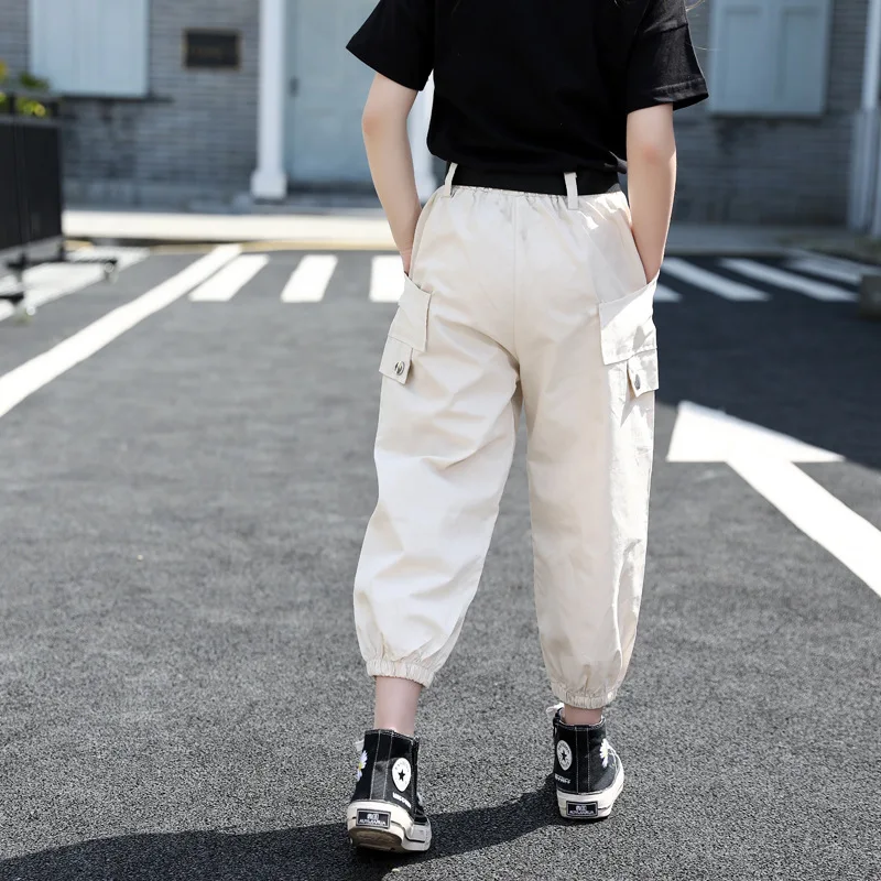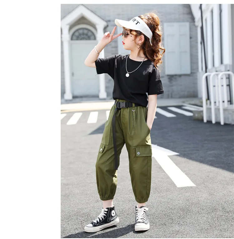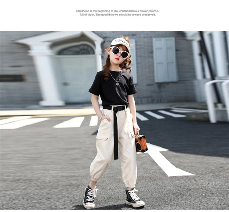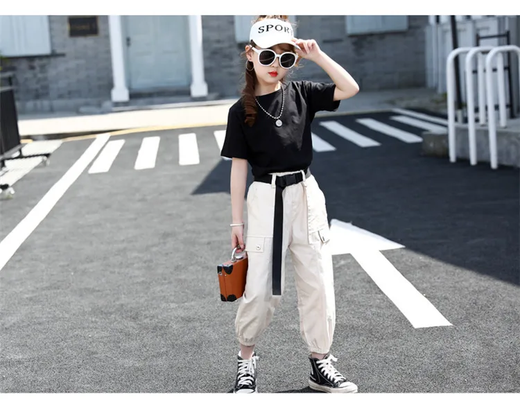 Летняя одежда для девочек; Однотонная рубашка + штаны; Костюм из 2 предметов для девочек-подростков; Детская летняя одежда; От 4 до 14 лет