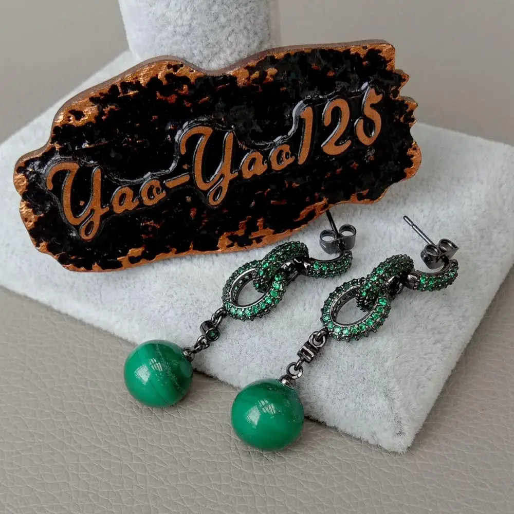 Информация о драгоценных камнях: натуральный круглый зеленый Малахит, зеленая фианитная петля, хорошее качество, яркий блеск!