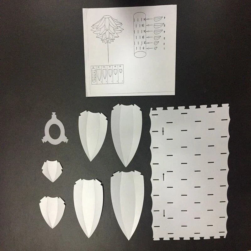 *Клей или инструмент не требуются. Части могут просто вставлять друг в друга, чтобы создать красивый подвесной светильник, абажур.