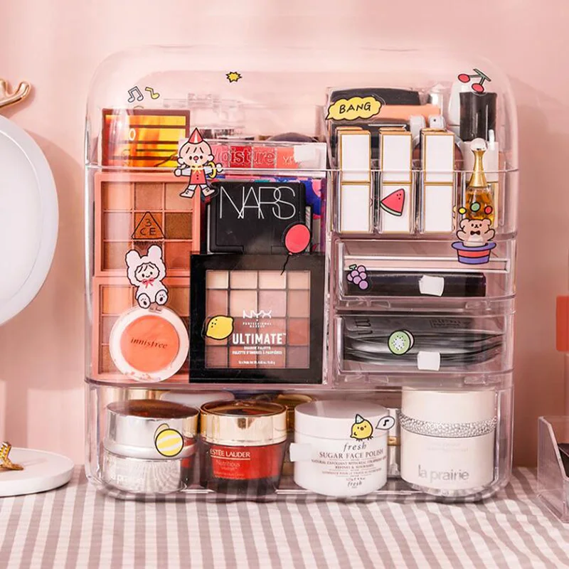 Многофункциональный 8-в-1, научный дизайн, активация пространства, разумное хранение предметов, экономия места Высокопрозрачный материал, светильник-чувствительный и чистой, не желтеет после длительного использования, то информация о любых дополнительных подвижная перегородка, более подробные перегородка Улучшенный дизайн, может легко хранить бутылки для воды до 18 см Пыленепроницаемый, водонепроницаемый и влагостойкий дизайн, не беспокойтесь о том, что макияж промокает, когда он помещается в ванную комнату Дизайн пряжки ящика, не боится скольжения после скольжения Примечание: Изображение предназначено только для отображения эффекта! Параметры: Материал: PS Характеристики: пылезащитный и водонепроницаемый, функциональный раздел Функция: косметика, хранение ювелирных изделий