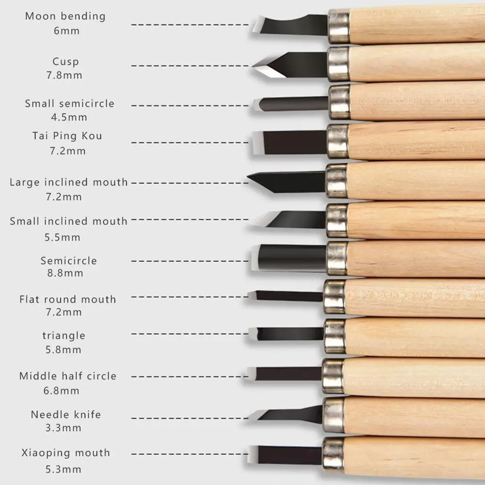 Материал: 65 марганец, деревянная ручка Общая Длина: 135 мм режущая головка: большая треугольная головка, большая косая головка рта, Маленькая плоская головка рта, маленькая косая головка рта, большая полукруглая головка, головка с игольчатыми лезвиями, маленькая полукруглая головка, головка Dapingkou, средняя полукруглая головка, маленькая треугольная головка, остроконечная головка Количество изгиба головки месяца: 1 комплект цвет: как показано на фотографии посылка в том числе: 12 x инструменты для резьбы