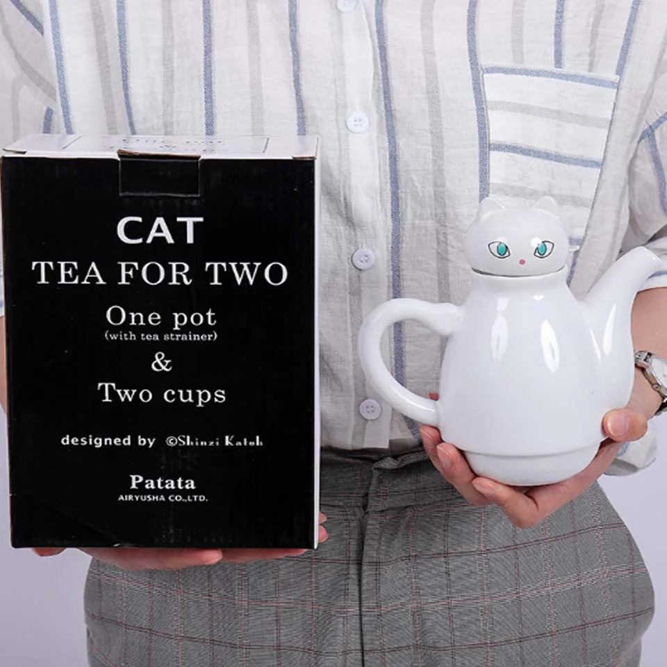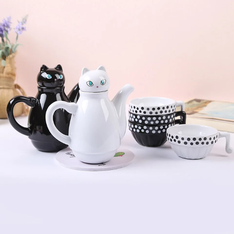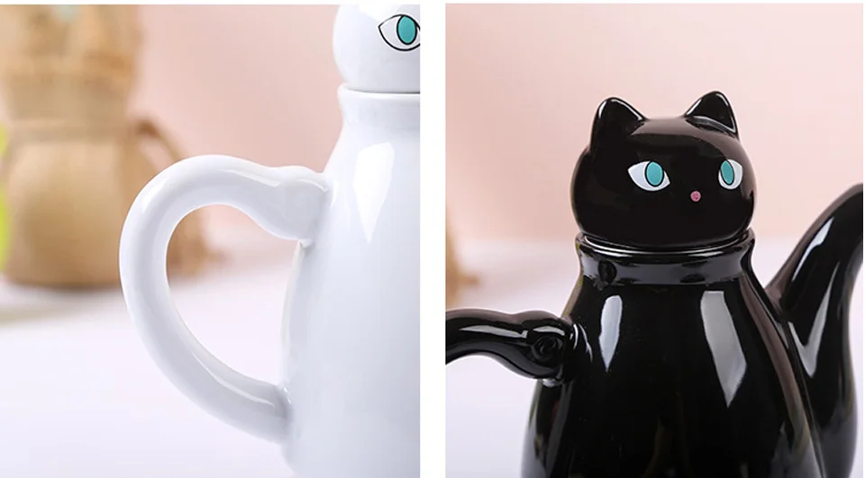 BORREY Teapot Ceramic Cute Cat Porecelain Tea Cup Teapot With Infuser Filter Kung Fu Tea Set Gift Tea Set Flower Tea Puer Kettle