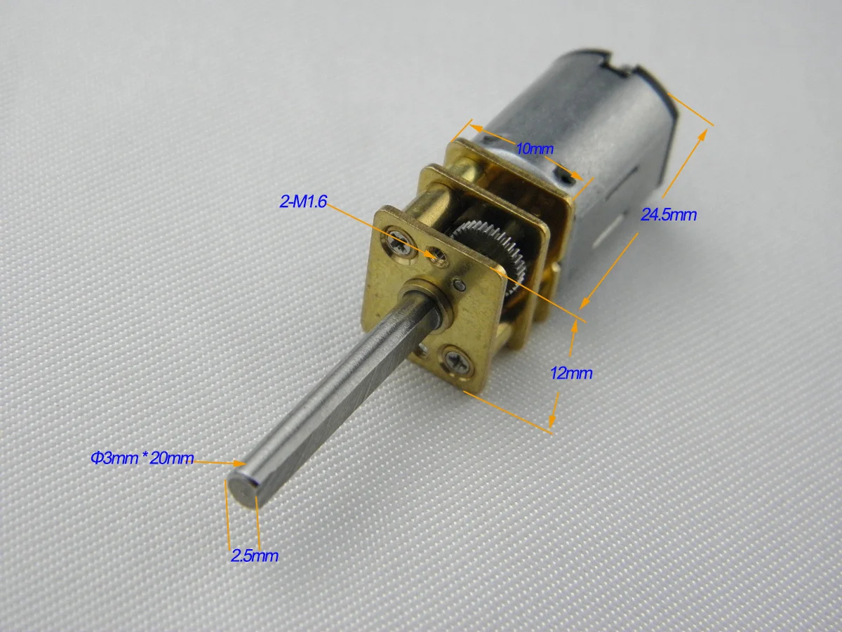 Маленький мотор-редуктор постоянного тока N20 Работает на 3-9 В постоянного тока. В основном используется в приборах, автоматизации офисов, бытовой технике. Такие как кофеварка, электронные дверные замки, электроинструменты, видеокамеры, камеры, проекторы, мониторы, робототехника, торговые автоматы, CD-ROM, игровые автоматы, кассовые аппараты, фен, электробритвы, массаж и т. Д.