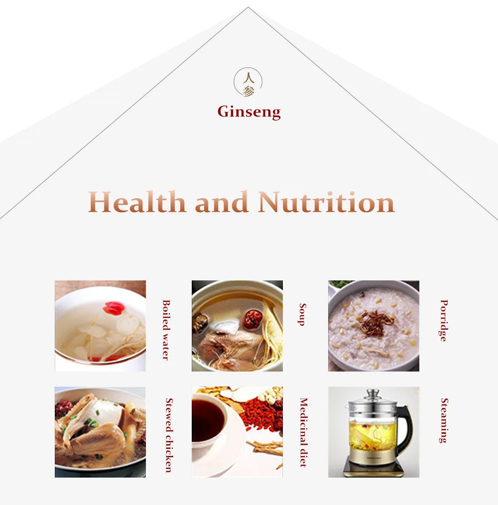 1. Красота. Женьшень имеет хороший косметический эффект, он может способствовать кровообращению нашей кожи, укрепляет питание кожи, предотвращает появление морщин и предотвращает сухость кожи. 2. Регулировка артериального давления. Люди с низким кровяным давлением часто могут есть женьшень, потому что женьшень помогает регулировать кровяное давление и улучшить положение с низким кровяным давлением. Люди с высоким кровяным давлением не должны есть его, легко сделать кровяное давление выше. 3. Диабет. Женьшень может улучшить диабет. 4. Отхаркивание. Женьшень обладает смягчающим эффектом, но лучше не есть женьшень, если он сопровождается кашлем, что не способствует восстановлению кашля. 5. Нервный срыв. Женьшень может улучшить признаки неврастения, улучшить бессонницу, усталость и другие признаки и повысить жизненную силу неврастения. 6. Улучшает зрение. Люди, которые обычно не имеют хорошего зрения, также могут правильно питаться женьшенем, потому что женьшень может улучшить зрение. 7. Живот. Он также оказывает определенное улучшение воздействия на хронический гастрит и может уменьшить вызванный им недостаток желудочной кислоты и даже устранить этот симптом.