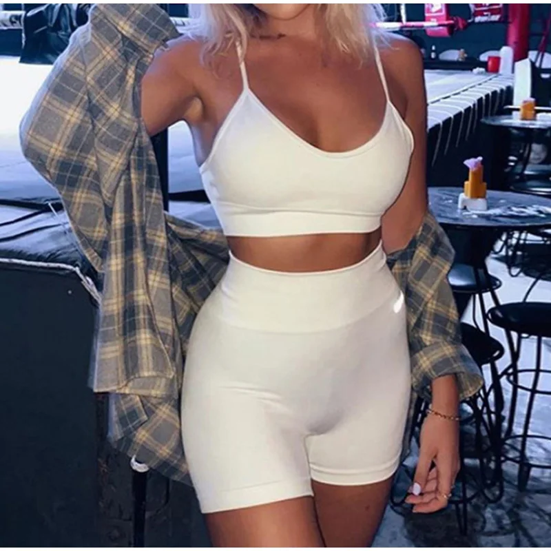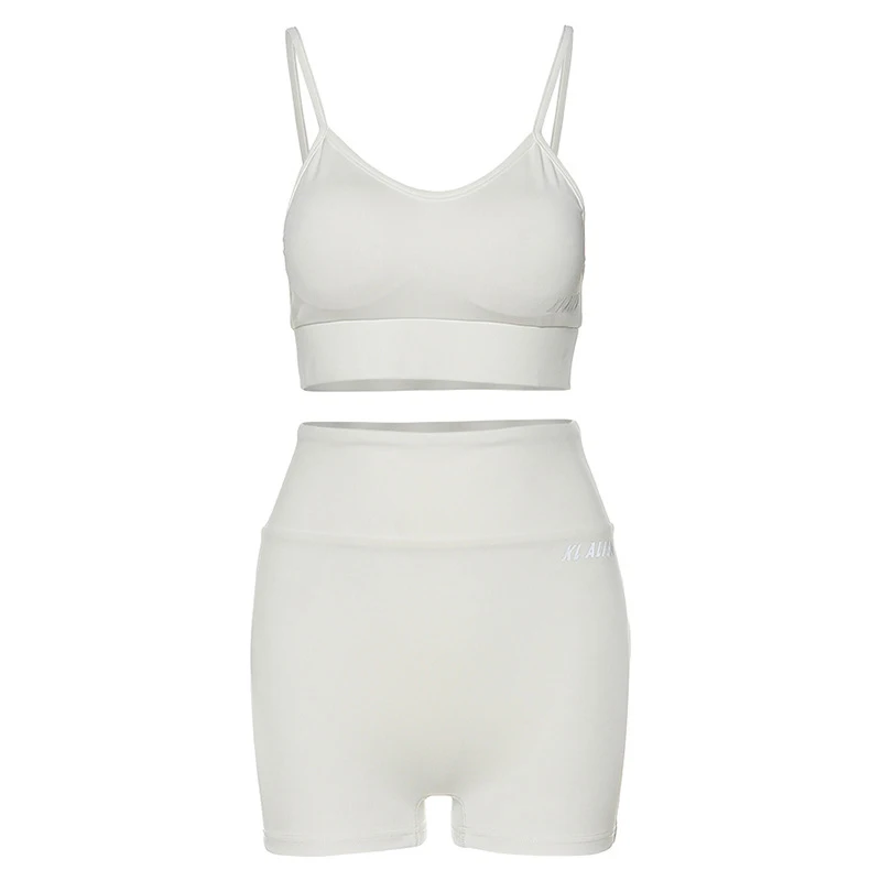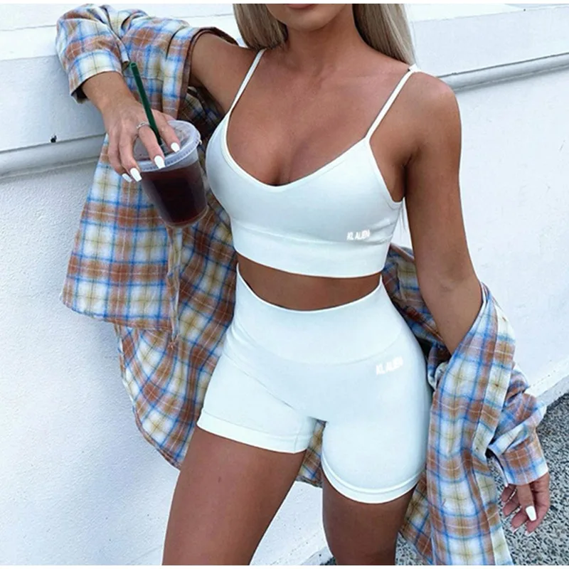 Женские спортивные костюмы с буквенным принтом, комплект из 2 предметов, укороченный топ без рукавов с v-образным вырезом, женские комплекты, повседневные летние модные женские шорты, костюмы