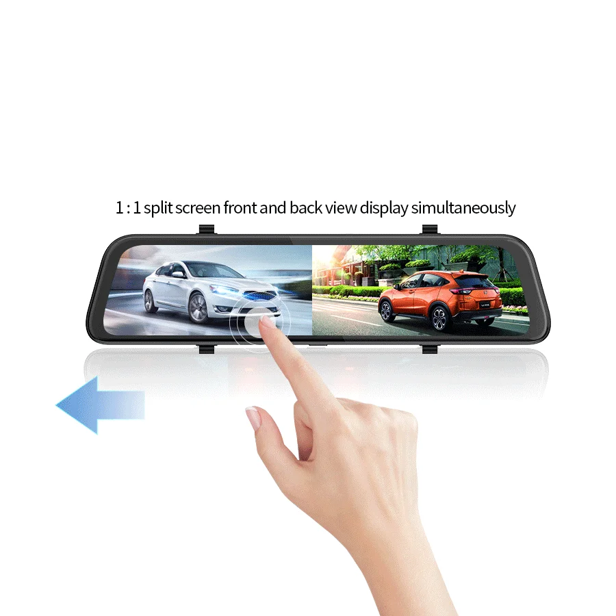 1:1 дизайн разделенного экрана для переключения записи спереди и заднего вида, большой экран и четко и ersily для проверки заднего вида. Вы можете переключаться, проводя пальцем влево или вправо. Он содержит 3 вида: вид спереди, вид сзади, вид спереди и сзади.
