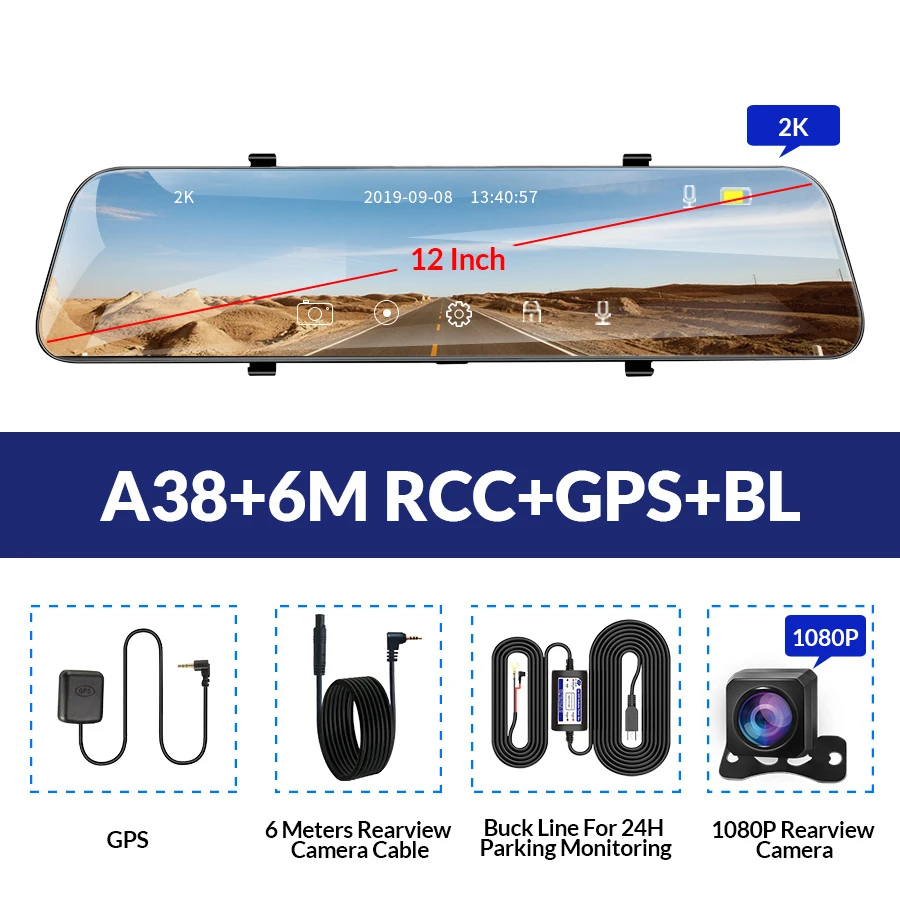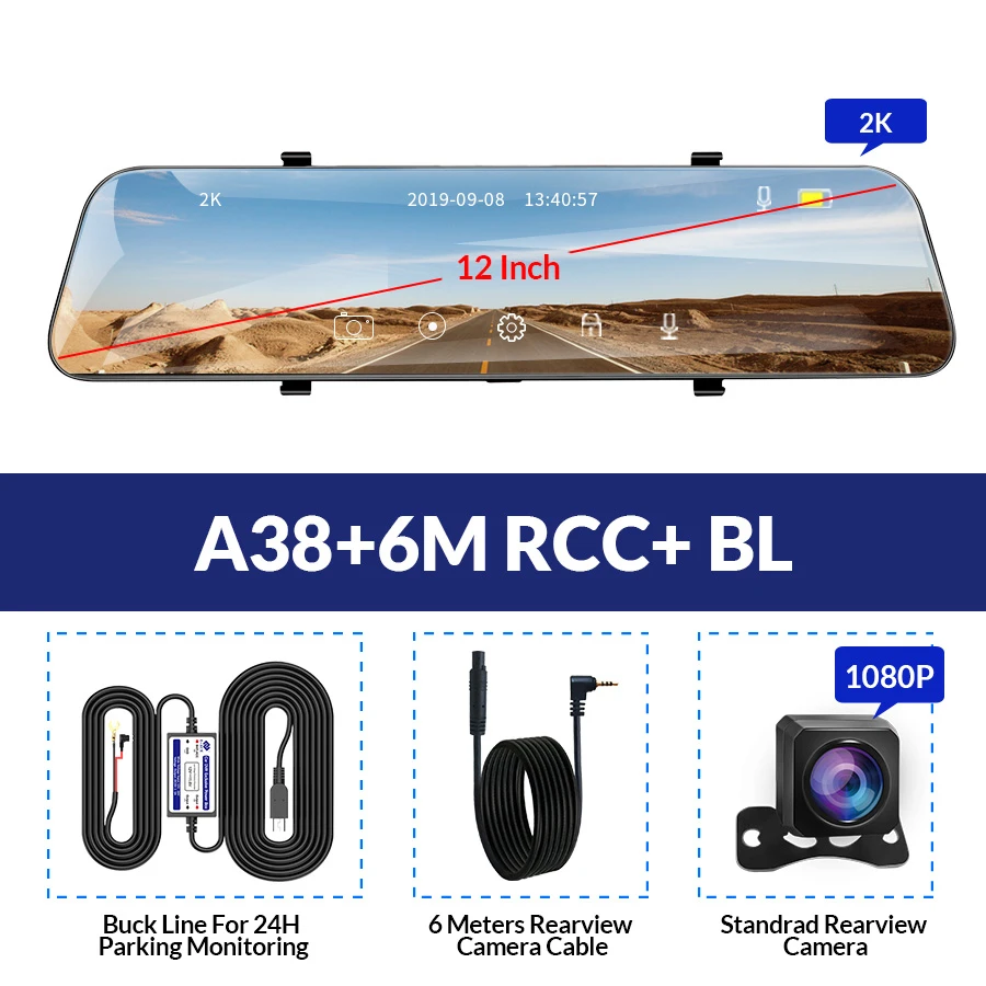 Особенности и технические характеристики Тип установки Зеркало заднего вида, подходит для всех транспортных средств с зеркалом Размер экрана (дисплея) 12,0 дюймовый сенсорный IPS экран Чипсет (процессор/процессор) Huawei Hisilicon Очиститель датчика камеры Передняя 2 Мп + Задняя 1 МП Объектив камеры Передняя + задняя; 6 стекла + 4 стекла; Угол 170 градусов + угол 140 градусов; Диафрагма F2.2 + диафрагма F2.2 Разрешение видео Передняя: 2560*1440P @ 30 кадров в секунду; Задняя: 1920*1080P @ 30 кадров в секунду Разрешение фотографий Размеры от 12 мес. Кодировка видео MJPG Батарея Встроенный (встроенный аккумулятор очень маленький, не может поддерживать работу, только для экономии времени и настройки, пожалуйста, используйте оригинальное зарядное устройство при работе) Языки экранного меню Английский, русский, китайский, японский, корейский и т. Д. (Если вы хотите другие языки, сообщите нам, мы поможем вам добавить его) Основные характеристики G-сенсор, циклическая запись, монитор парковки, отображение времени и данных, широкий динамический диапазон, отображение изображения в картинке, Автоматическое включение/выключение Слот для карт памяти Карта Micro SD, класс 10 и 16 Гб до 64 Гб (не входит в комплект) Автомобильная камера заднего вида обновления Поддержка Макс 6 метров кабель камеры заднего вида Добавлять новые функции Ночное видение, фронтальная камера 2560*1440P с тыловой камерой 1080P Больше функций Скоро в продаже ..... Упаковочный лист Основные: 1 х упаковочная коробка