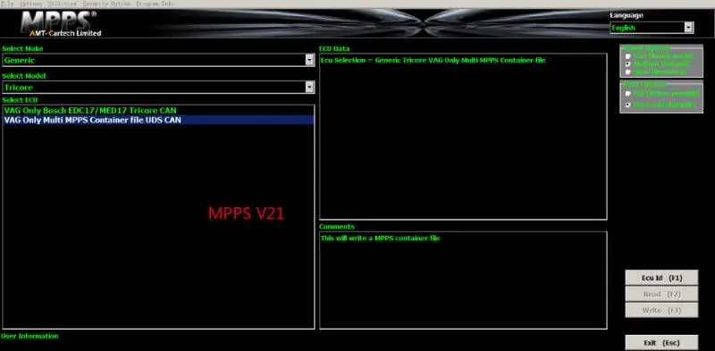 Mpps V21 по сравнению с MPPS V18 может использоваться для выполнения OBD разблокировки с использованием нового протокола в MPPS, в настоящее время поддерживает Bosch EDC17C46 и EDC17C64.