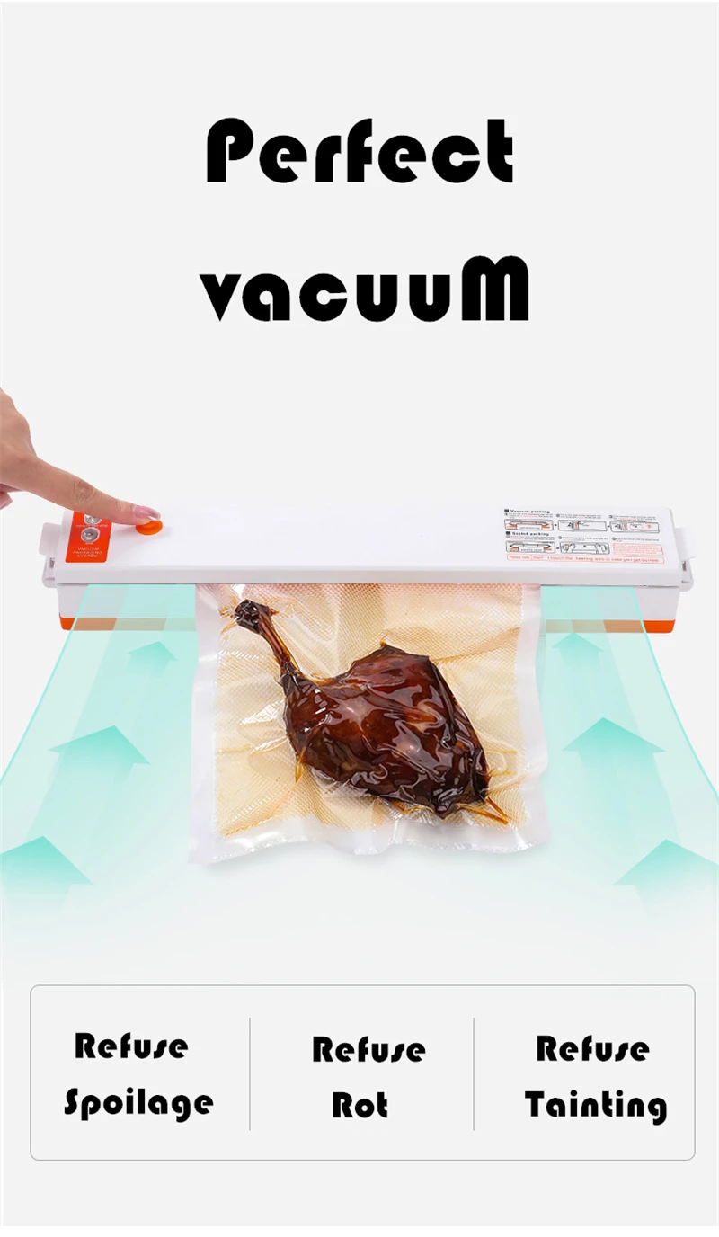1. Компактная вакуумная система запечатывания устраняет ожоги морозильной камеры, уменьшает порчу и пищевые отходы. 2. Свежие, антибактериальные, влагостойкие, устойчивые к плесени, антиоксиданты. 3. Один сенсорный вакуумный упаковщик, прост в использовании. 4. Низкий уровень шума, низкая вибрация.