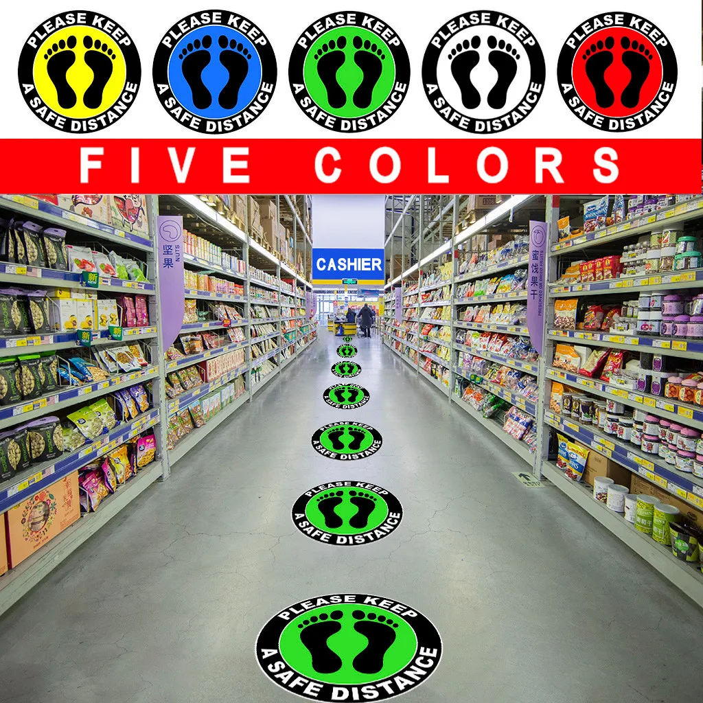 -Держать 6 футов между Расстояние маркер включает в себя материал ПВХ. Эти маркеры расстояния 6 футов Идеально, чтобы напомнить клиентам и рабочим, пожалуйста, подождите здесь Обозначенный маркер на пол.