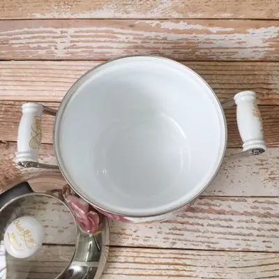 Он изготовлен из высококачественной эмали исключительно вручную, с видимым качеством, быстрой теплопроводностью, Хорошей теплоизоляцией, гладкой кастрюлей и сохраняет оригинальный вкус пищи.