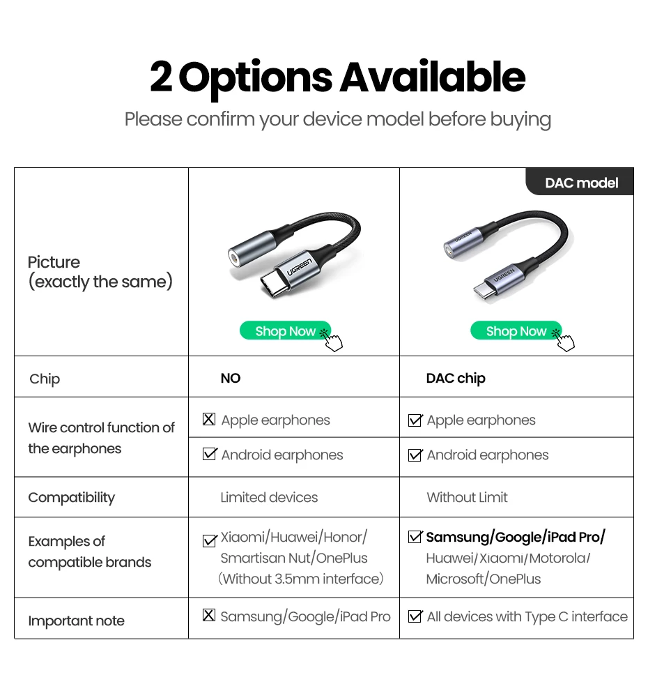 (Например:Это не работает дляSAMSUNG/IPhone/iPad Pro 2018/HTC/LeEco le/GoogleПиксель 2/Острый АКВОСS2/Asus Zen Fone 3/Bluedio T4S/Все смартфоны с 3,5 мм jackИ т. Д.)Примечание: Если ваше устройство является брендом, таким как Samsung/iPad Pro/Google, вы можете нажать на картинку ниже, чтобы купить модель DAC.