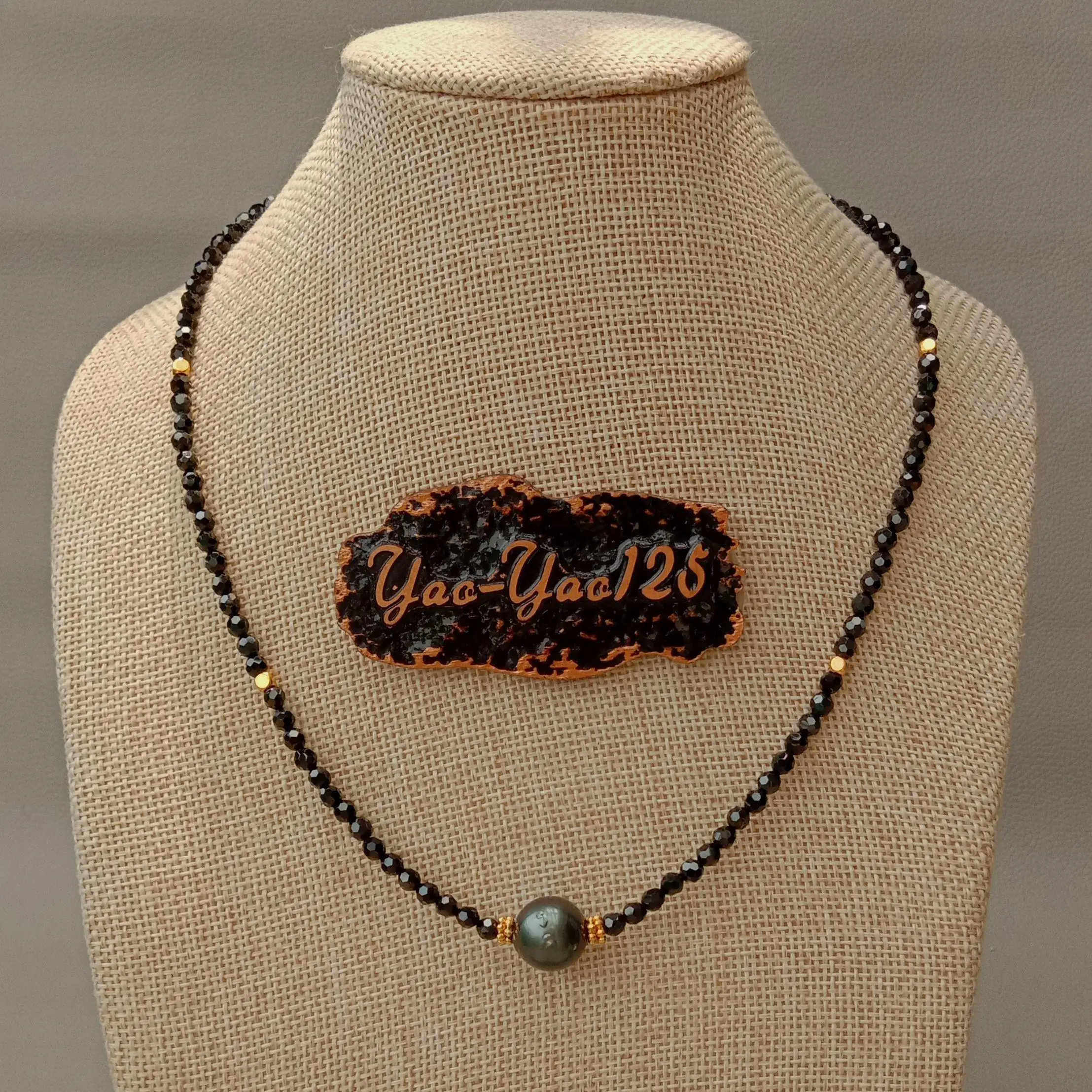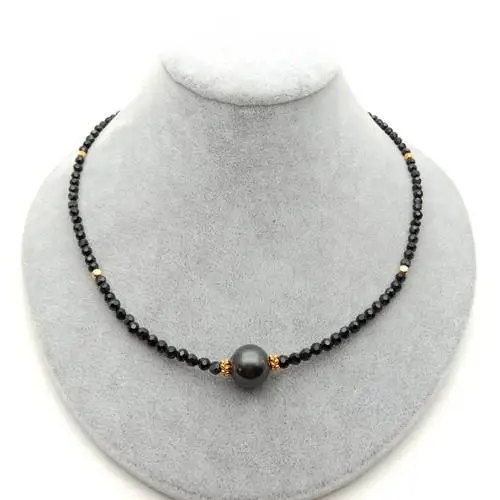 Информация о драгоценных камнями: натуральный таитянский черный жемчуг, круглый черный граненый шпинель, хорошее качество, высокий блеск!