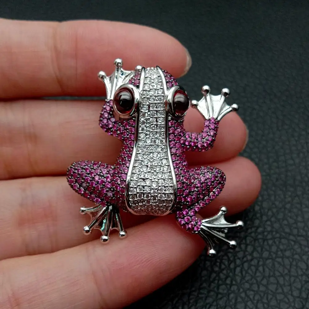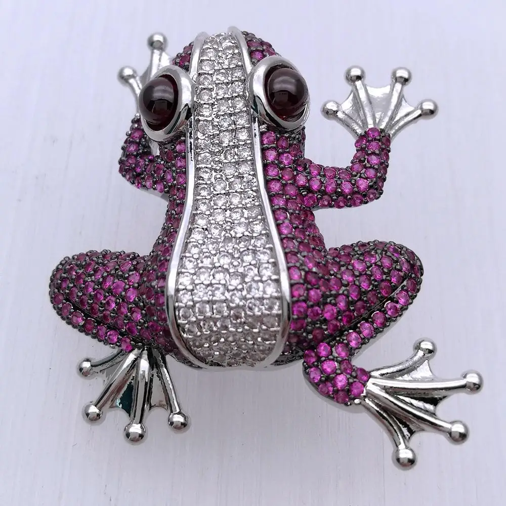 Самоцветы информация: белый с позолотой, четкий и фуксия, украшенные фианитами лягушка булавка, кулон, хорошее качество, высокий блеск!