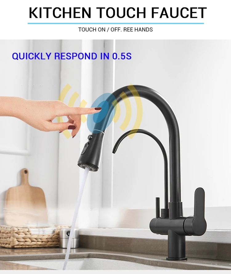 Кухонный фильтр для раковины, сенсорные краны, выдвижной автоматический умный датчик, умный фильтр для питьевой воды, кран, роскошная латунь