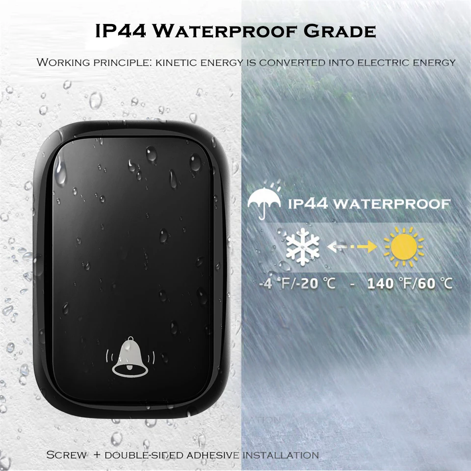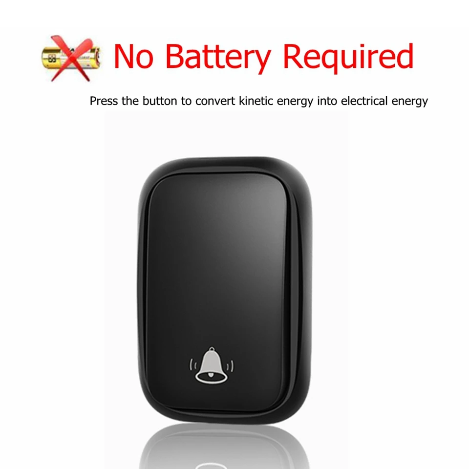 Вместо использования аккумулятора, кнопка преобразует кинетическую энергию в электрическую и посылает сигнал при нажатии; Не волнуйтесь, если аккумулятор имеет мощность, поэтому не пропустите важных посетителей.