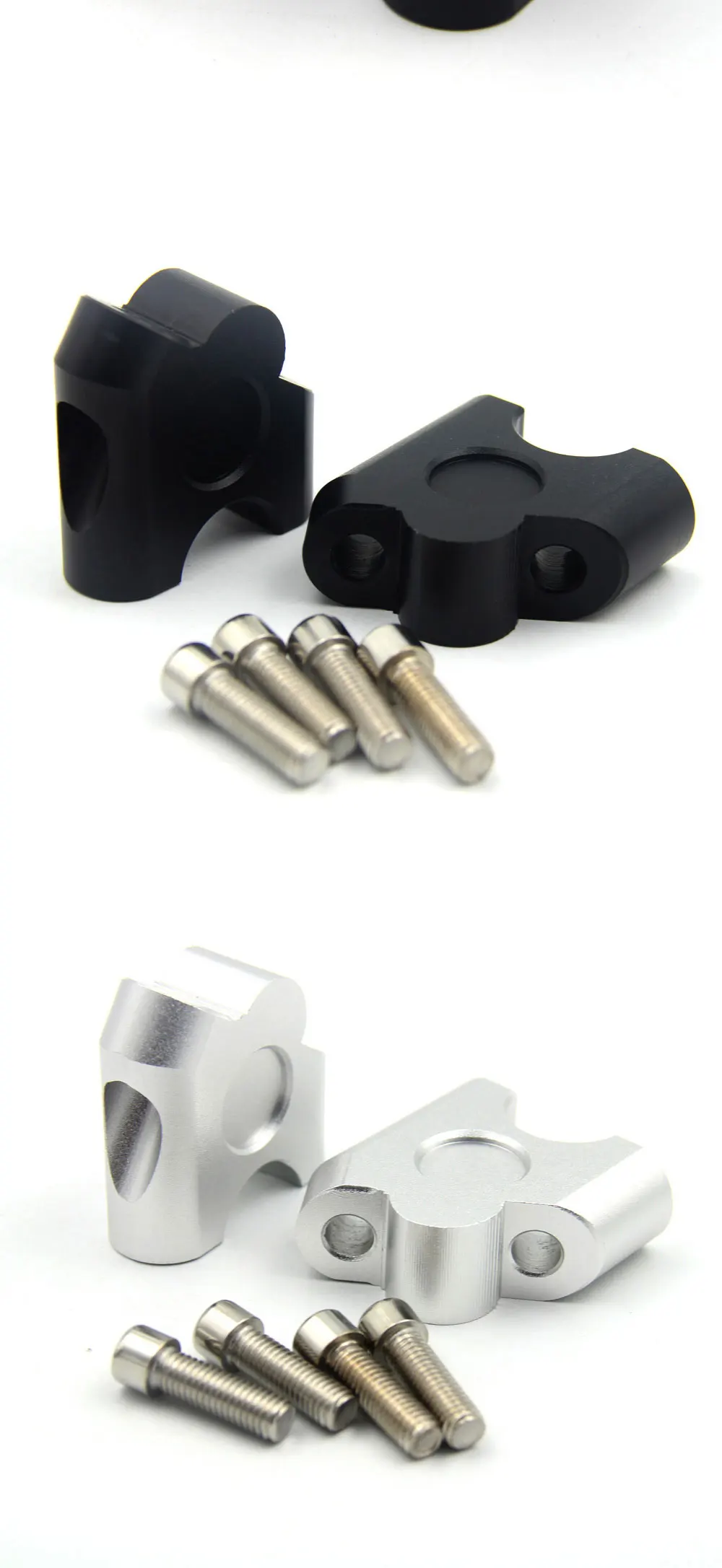 Состояние: 100% новый Цвет: черный Материал: ЧПУ Алюминиевый сплав Диаметр отверстия: 22 мм Крепежный болт: 8 мм Проект включает в себя: 2 руль стояк зажимы 4 крепежные болты Подходит для: подходит для мотоциклов/крейсеров/велосипедов и 7/8 "22 мм рулей, таких как: для Honda, Yamaha, Kawasaki, Suzuki, Triumph и многих других моделей. «Описание товара