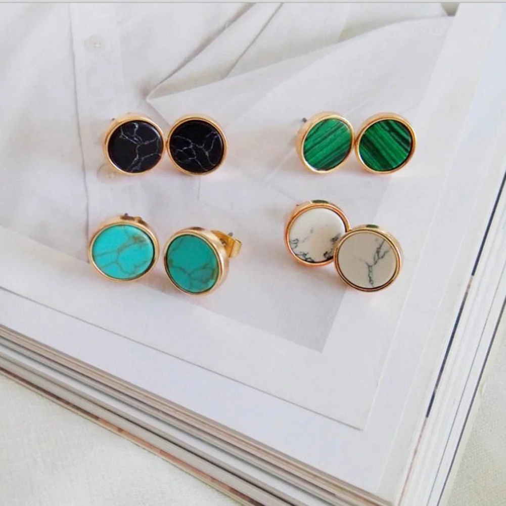 Модные квадратные треугольные круглые геометрические мраморные белые серьги-гвоздики для женщин