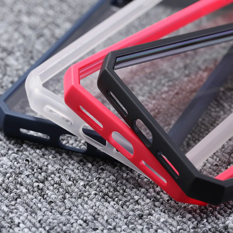 Slim and simple, soft frame+hard back. 1, with soft border, Non-slip,full protector phone 2, Acrylic material hard back, Clear, scratch resistant 3, Airbag anti-drop design, 10M anti-drop 4, Selected materials, Mixed two-tone, No been yellow when you used long time