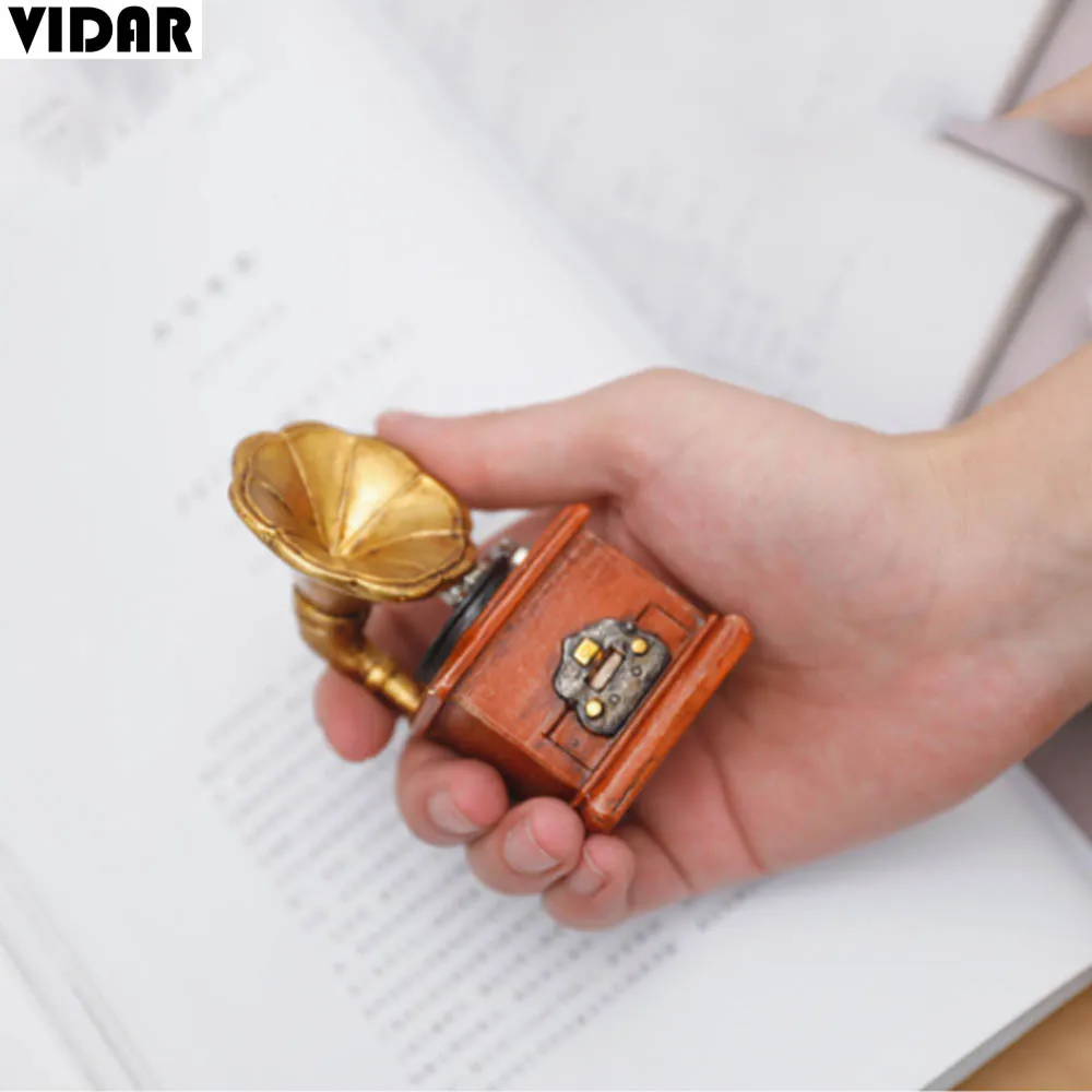 Миниатюрные фигурки VIDAR из смолы, мини-Садовая статуя, граммофон, винтажный домашний декор, игрушка с орнаментом, украшение стола, мини-Декор Bonzai