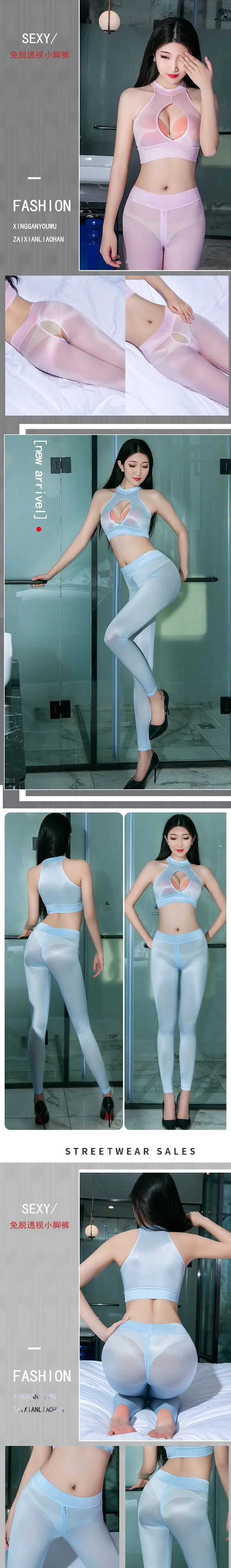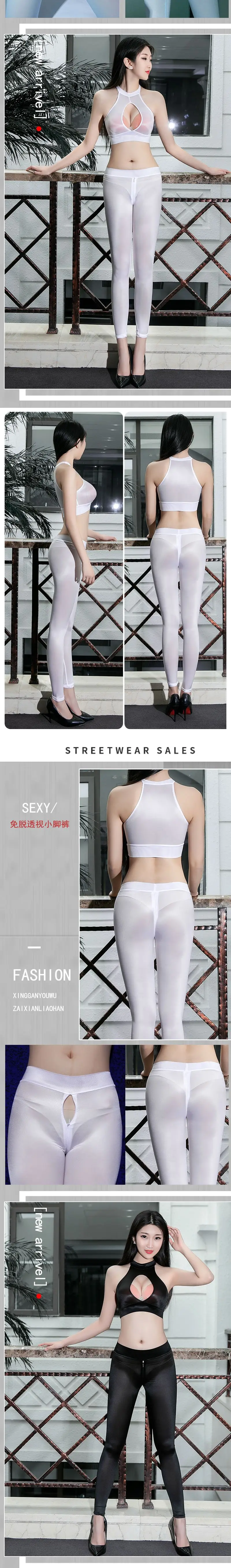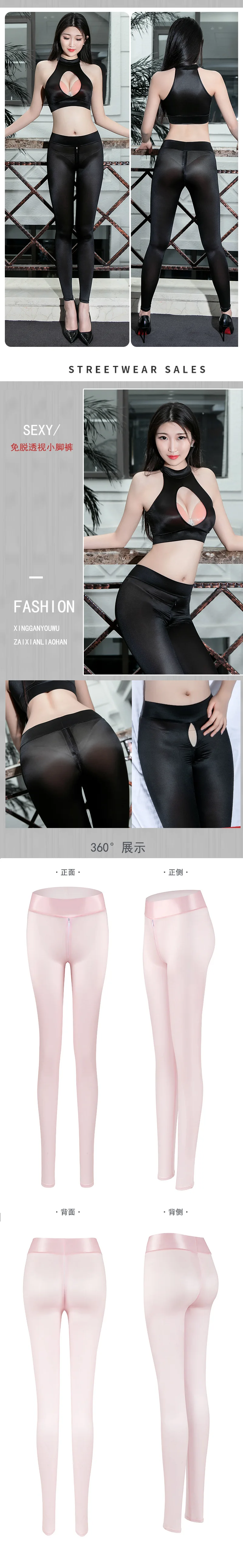 Глянцевые Блестящие Брюки-карандаш на молнии с промежностью, леггинсы для мокрого образа, обтягивающие леггинсы для фитнеса, Сексуальные клубные брюки