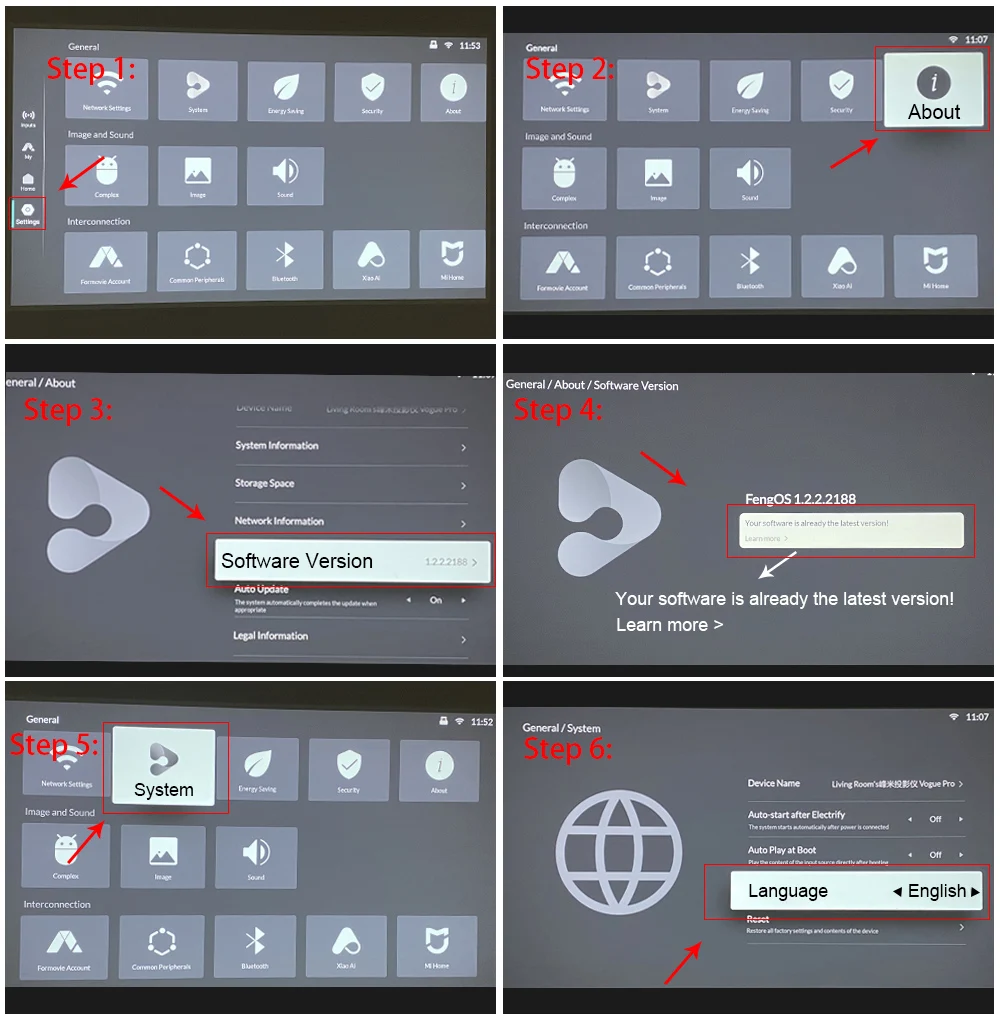 1. Когда вы получите проектор, пожалуйста, сначала обновите его до последней версии.