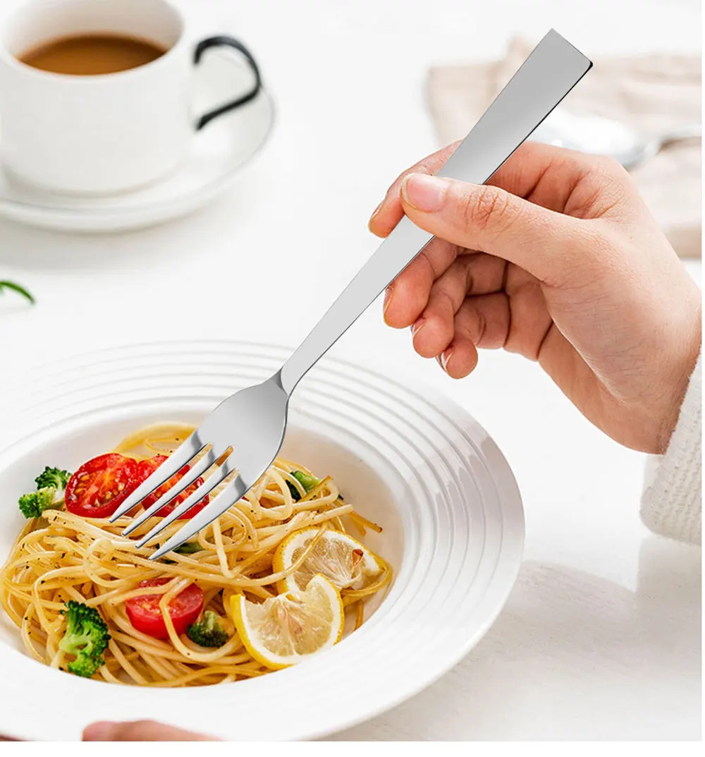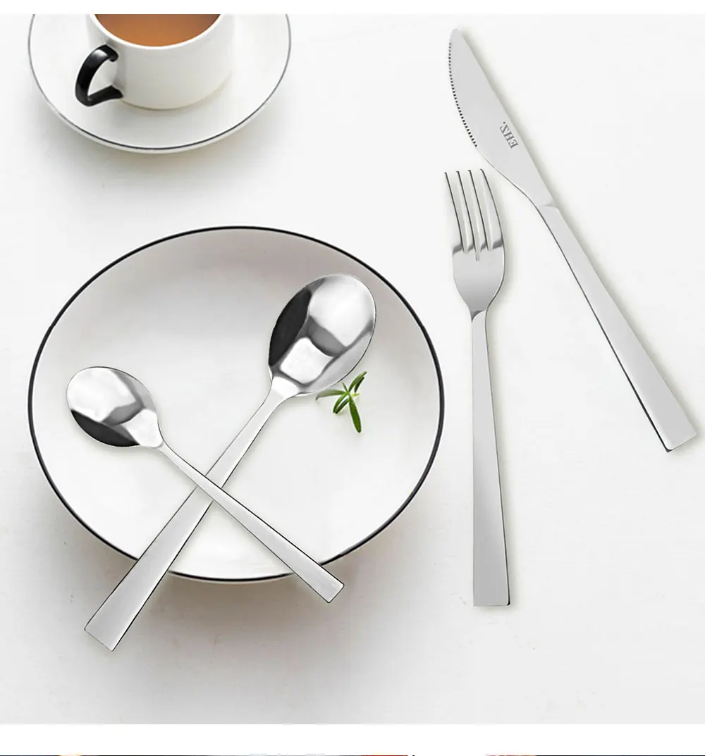 【Простой дизайн 】 зеркальная полировка с гладкой кромкой и простой дизайн внешнего вида, что делает эти столовые приборы не легко скрыть грязь и легко чистить. Удовлетворите все ваши столовые столы.