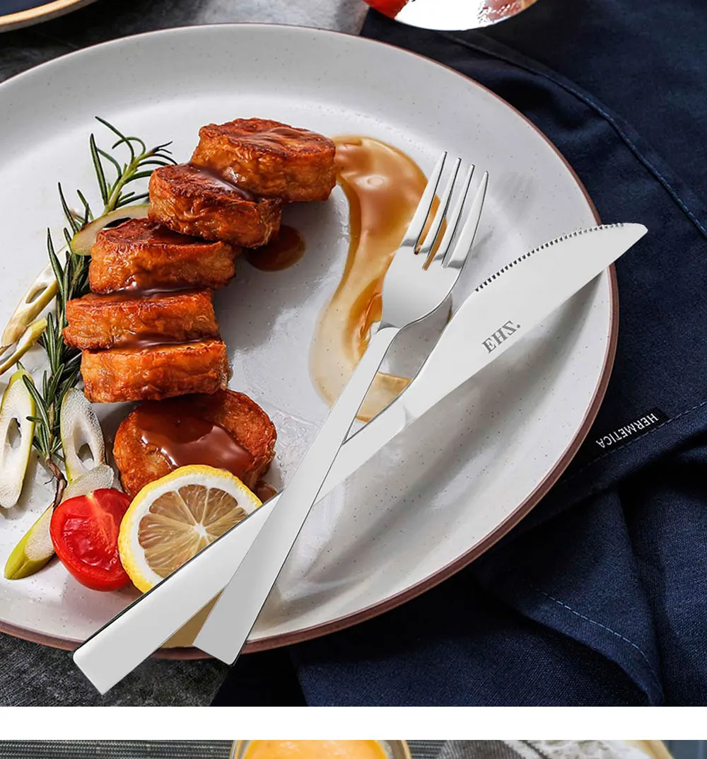 【Премиум набор столовых приборов из нержавеющей стали 】ehz набор серебряных изделий Изготовлен из высококачественного пищевого материала из нержавеющей стали, который прочный, не будет изгибаться, коррозионная стойкость, устойчивость к ржавчине и безопасность в посудомоечной машине.