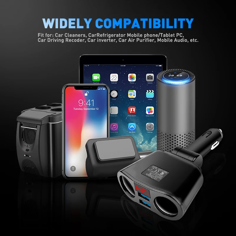 ● Тип: прикуриватель (автомобильное зарядное устройство) ● Количество: 1 шт. ● Материал: ABS + PC + электрический компонент ● Цвет: черный, белый ● Вход: 12-24 В ● Общий выход USB: 5V3.1A MAX ● Двойная Зажигалка Общая мощность: 120 Вт Рабочая температура: 0- 60 °C ● Подходит для 12-24 В, автомобиля, внедорожника, внедорожника и микроавтобуса ● Применение: мобильный телефон, компьютер, диктофон, MP3, камера и т. Д.