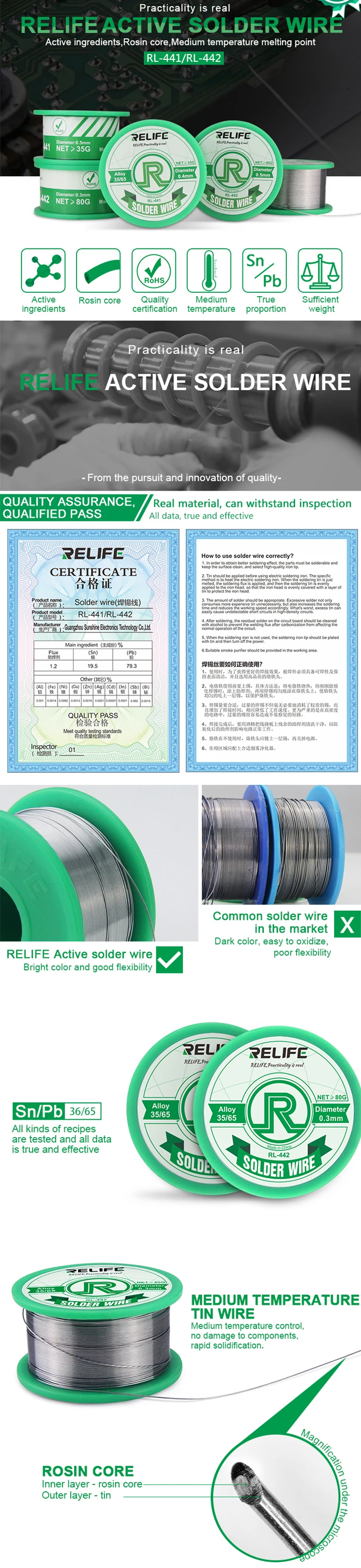1. Модель: RL-441 2. Вес: 35 г 3. Ингредиент: Alloy35/65 4. Размер: 0,3 мм/0,4 мм/0,5 мм/0,6 мм