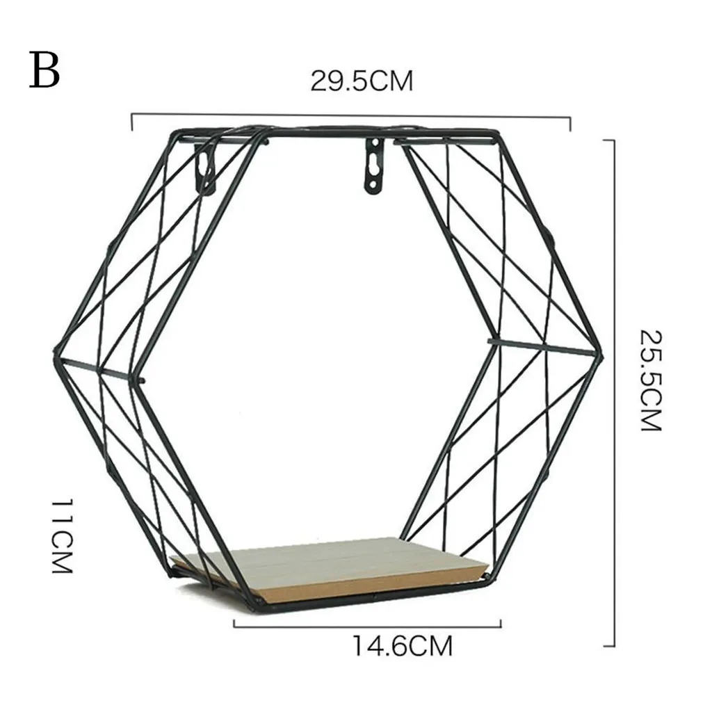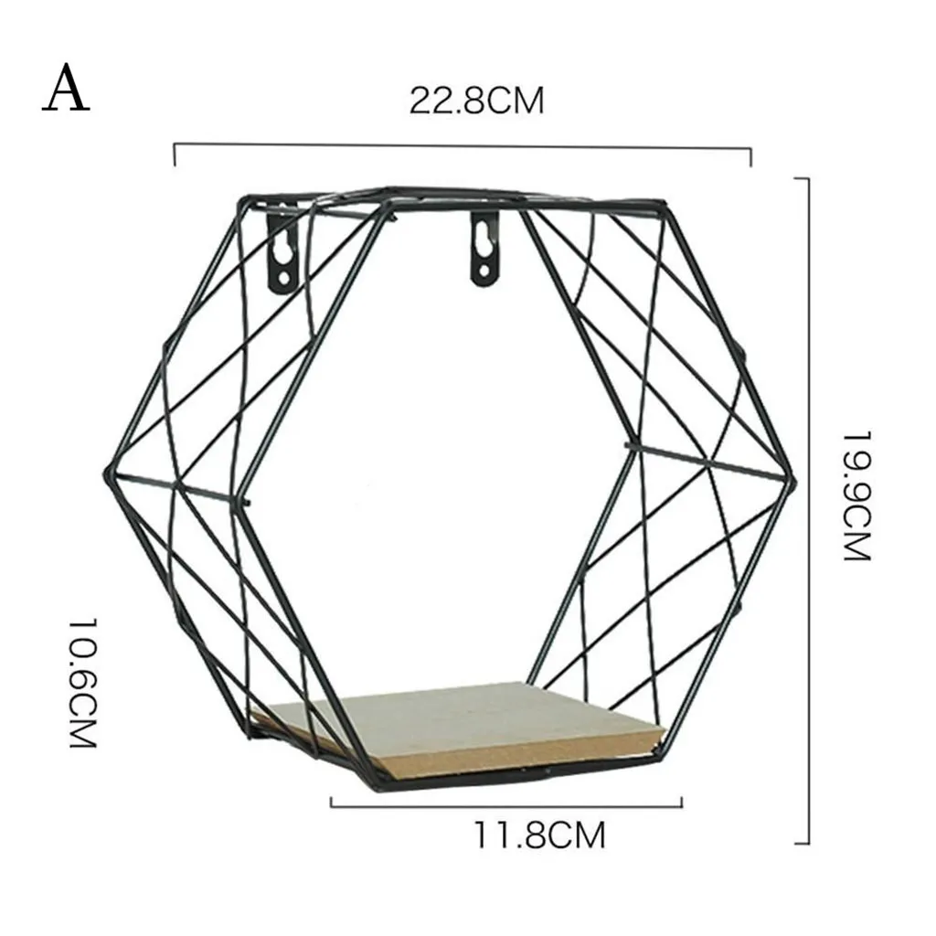 Железная шестиугольная сетчатая настенная полка, комбинированная подвесная Геометрическая фигурка, украшение