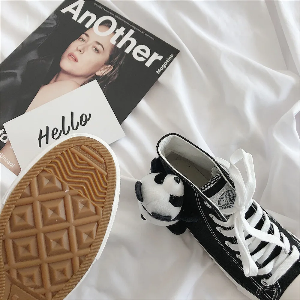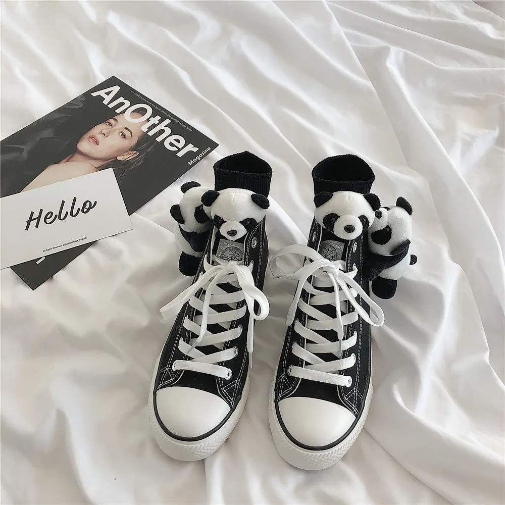 Милая парусиновая обувь в стиле Лолиты с пандой; Kawaii Doll n; Женская повседневная обувь с высоким берцем; Студенческие чулки с пандой для девочек; JK