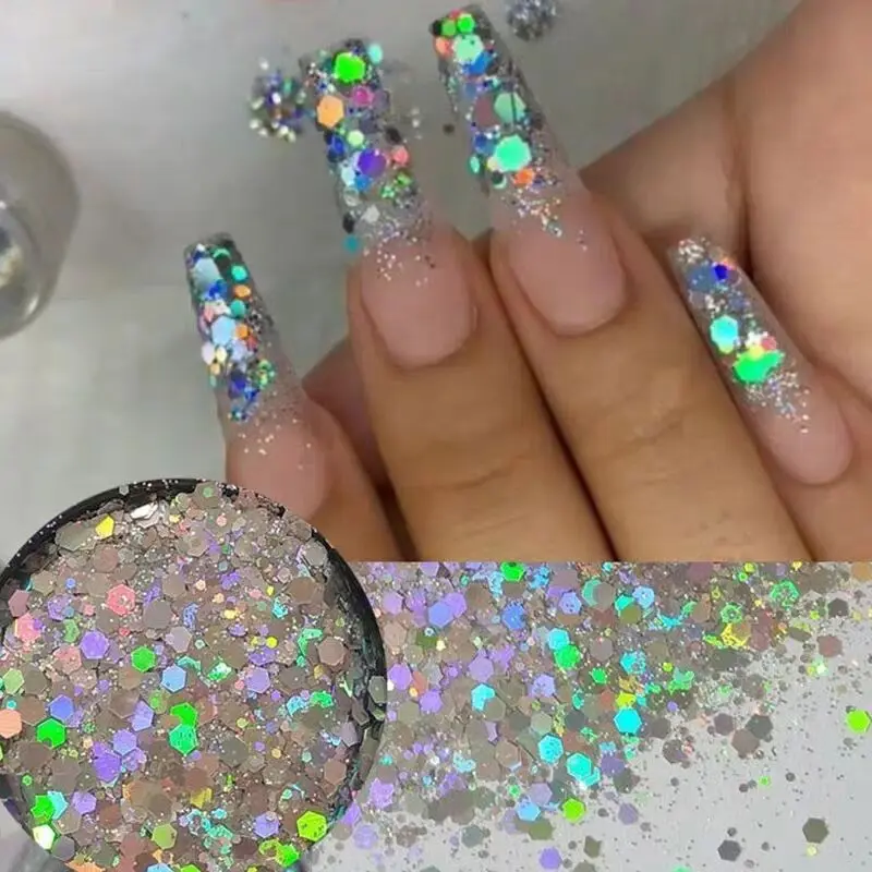 Параметры: Количество: 1 коробка Емкость: прибл. 10 г Цвет: как на изображении Посылка содержит: 1 коробка голограмма Блестки для лазерного маникюра/ Блеск для ногтей Блеск порошок Особенности: 100% новый бренд и высокого качества для художественного оформления ногтей Легко наносится на натуральные или искусственные ногти Подходит для профессионального использования в салонах