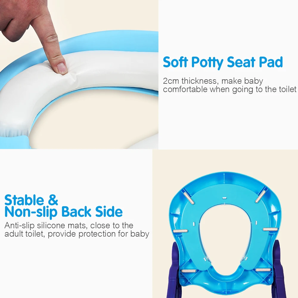 Тренировочное сидение для горшков с лестницей предлагает удобный для ребенка способ безопасно ходить в туалет. С нескользящей лестницей, удобной ручкой и мягкое сиденье для унитаза, тренировочное сиденье для горшки может обеспечить защиту для ребенка. Надежная конструкция делает ее подходящей не только для домашнего использования, но и для костюмированной поездки. И он совместим с большинством туалетов в повседневной жизни.