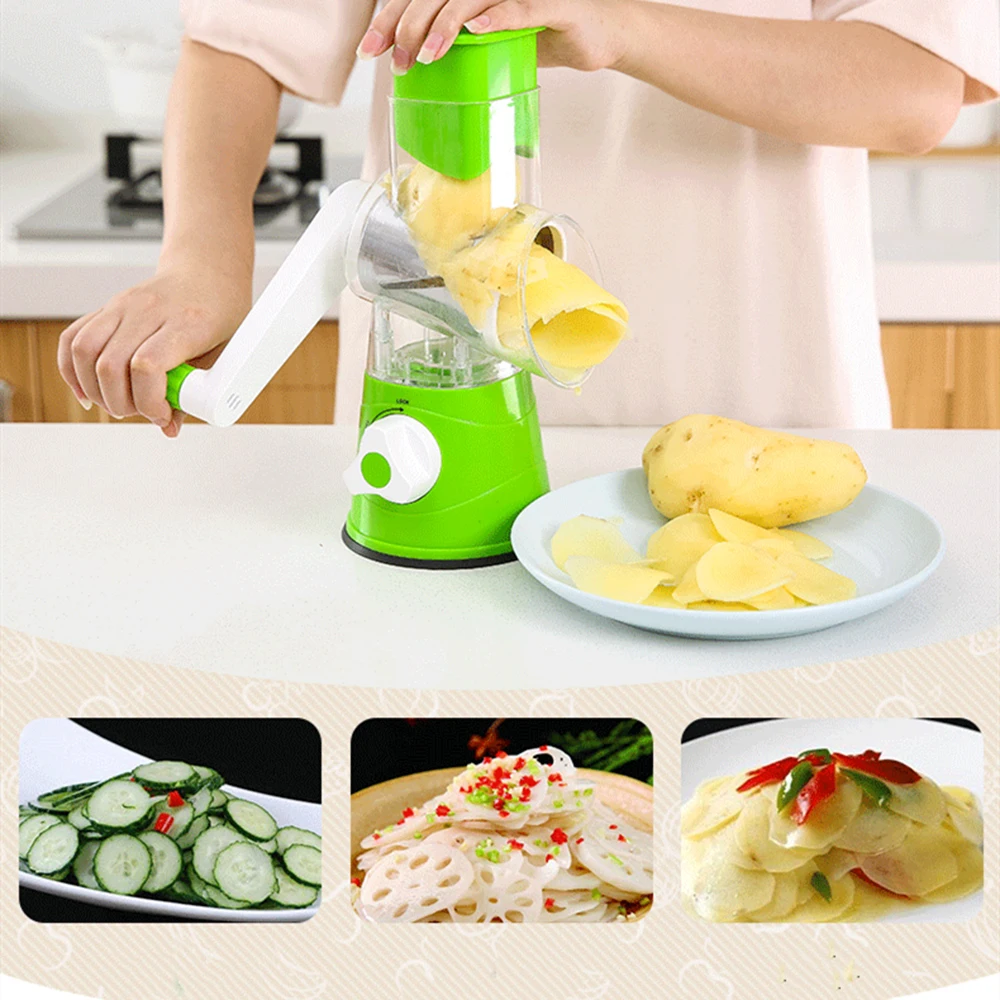 Название продукта: ручная машина для резки овощей Цвет: зеленый/красный/синий Материал: АБС + 304 нержавеющая сталь Функция: shred, slice и grind
