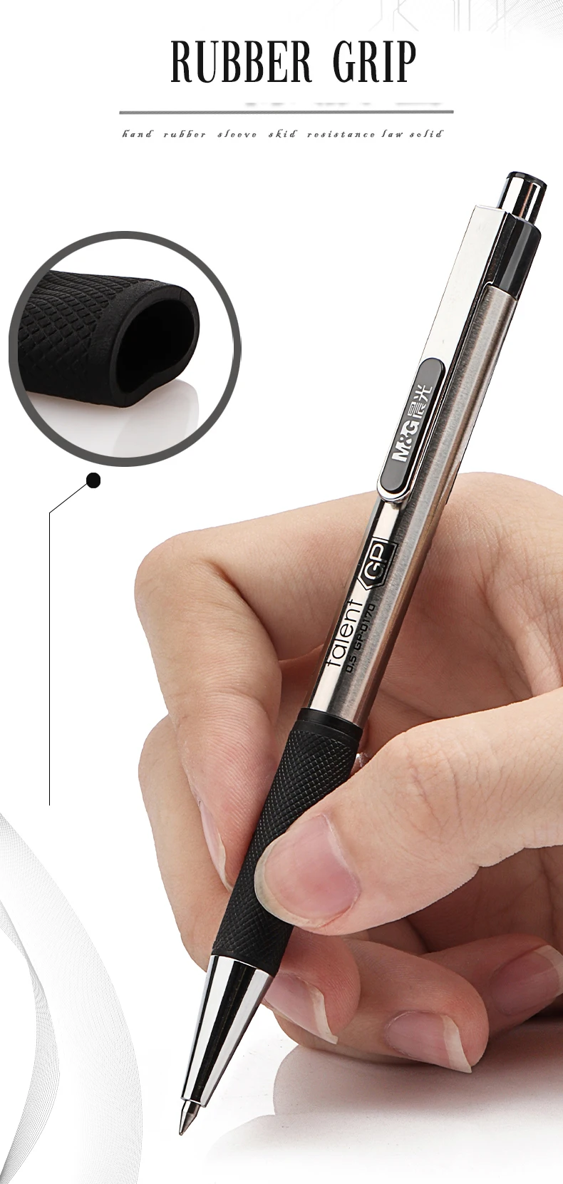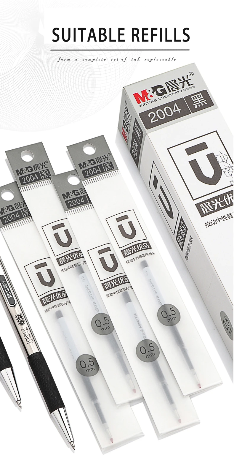 M&G 12pcs/lot Metal Gel Pen 0.5mm netural Pens with Gel ink Pen writes refill for school black blue red