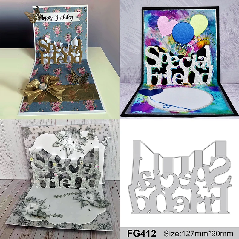 Description: High quality fine metal cutting dies made of 100% steel, these steel dies will cut through cardboard, thin chipboard, 1/4 inch cork, felt, acetate, adhesive canvas, fabric, cloth, denim, paper sandpaper, 2mm craft foam, wood veneer paper, photo magnet sheets and much more. Works on most major die cutting machine brands, lets you experience the fun of DIY! Size:FG410-128mmX109mm FG411-127mmX77mm FG412-127mmX90mm FG413-127mmX93mm FG414-128mmX104mm Material:Carbon steel Color:sliver Condition:100% Brand New & Cute Package:OPP bag Material:Steel Color:Silver Notice: 1. Due to light and screen difference, the item's color may be slightly different from the pictures. 2. Please allow 1-2cm differences due to manual measurement. 3. Thanks for your understanding!