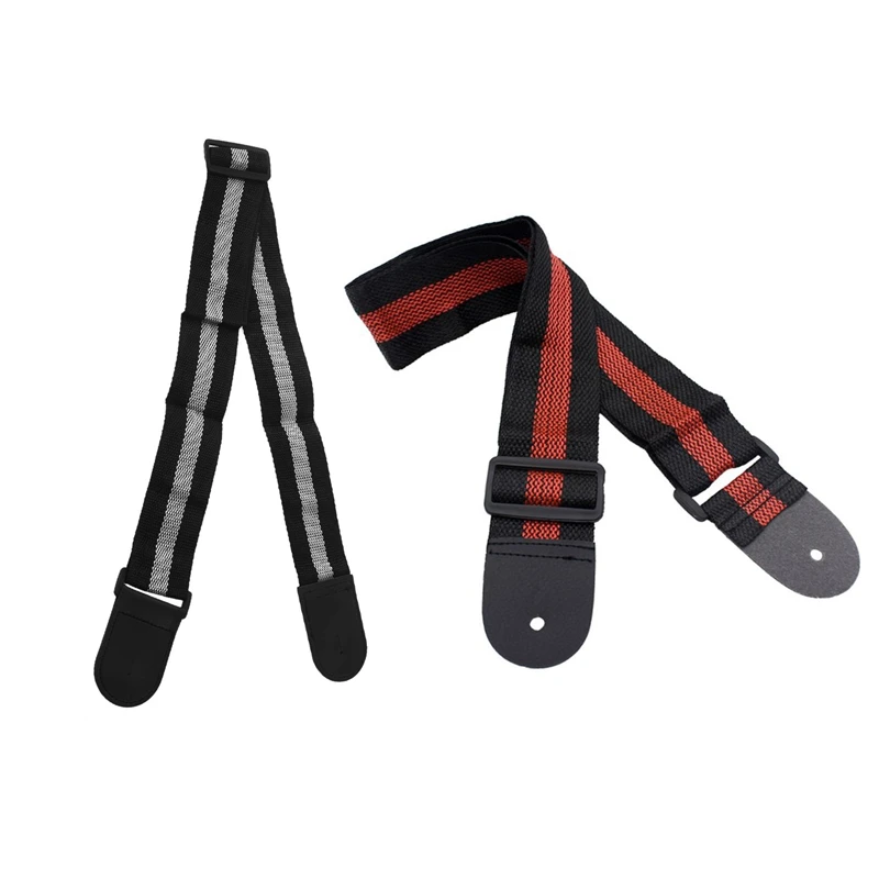 2 шт. Регулируемый гитарный ремешок из нейлона для акустической гитары с аксессуарами из искусственной кожи для гитары-черный + серый и черный + красный