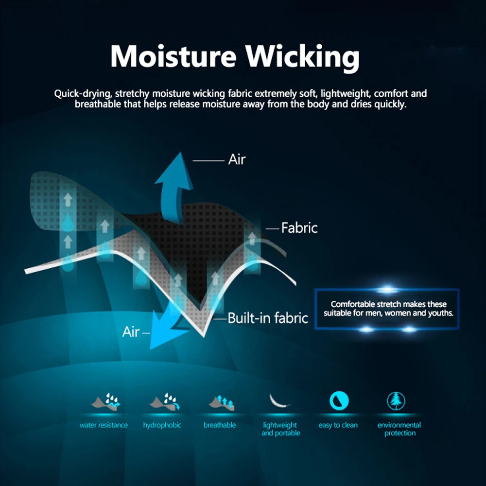 Быстросохнущая эластичная Влагоотводящая ткань чрезвычайно мягкая, легкая, удобная и дышащая, которая помогает отводить влагу от тела и быстро сохнет.