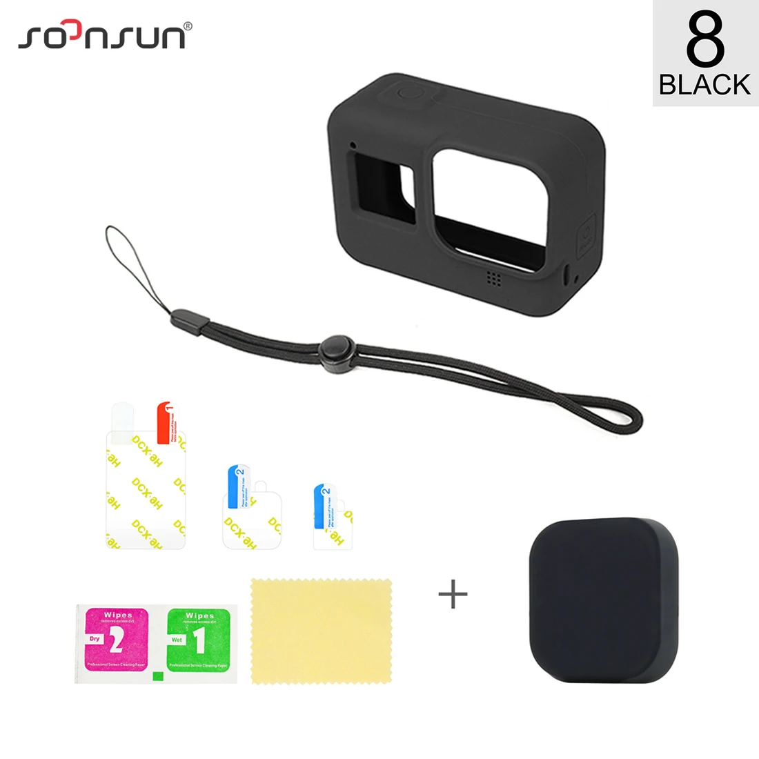 SOONSUN мягкий силиконовый защитный чехол + крышка объектива камеры + Защитная пленка для экрана для GoPro Hero 8 Black Go Pro 8 аксессуар