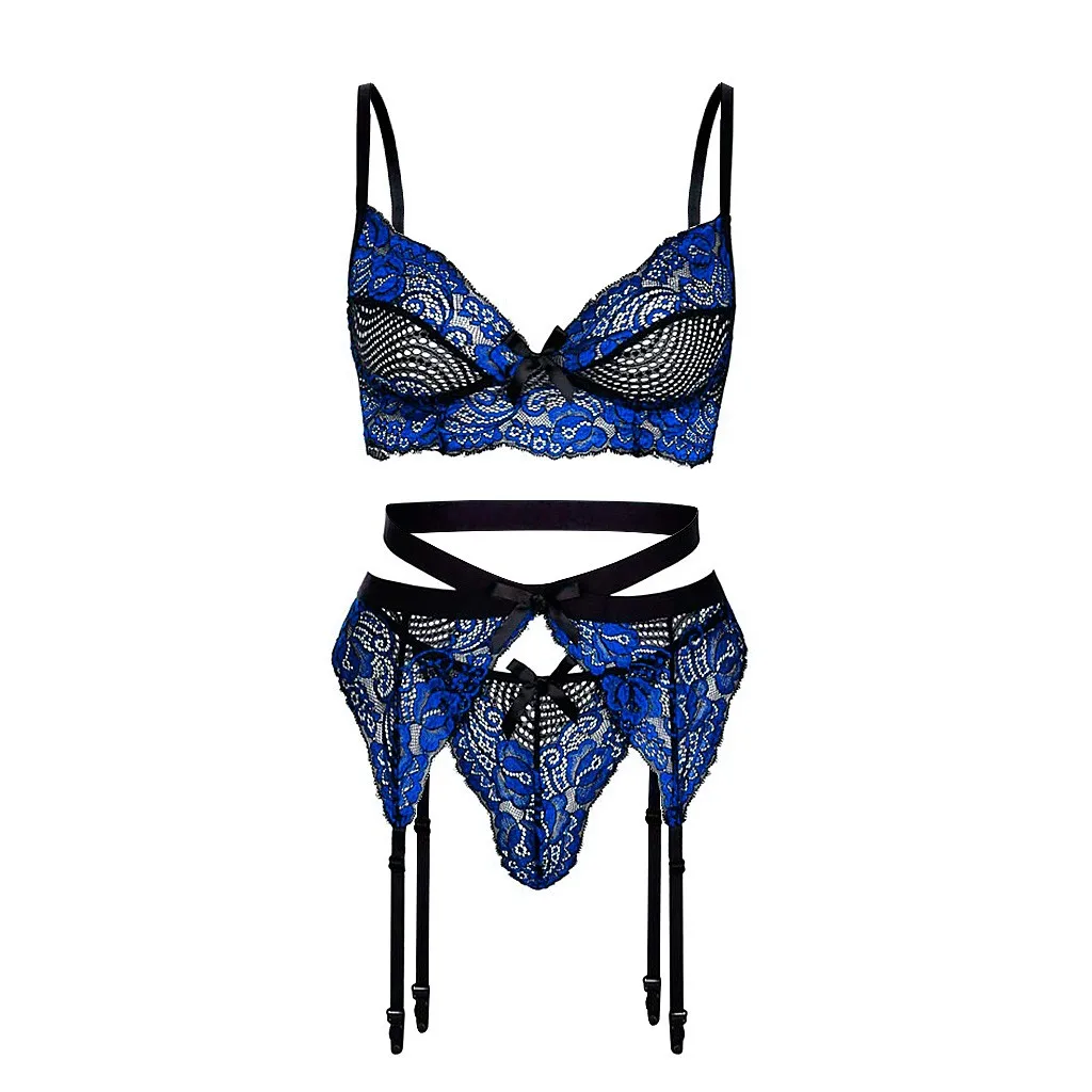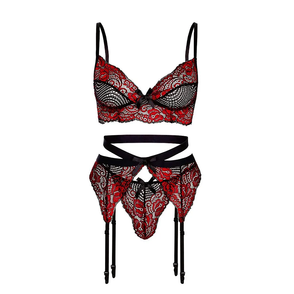 Пол: Для женщин Количество:1 Сезон: четыре сезона Подходит для: Повседневная носка Материал: полиэфирное кружево Украшение: Нет Стиль: сексуальный, модный Посылка iNclude: 1 нижнее белье, 1 стринги, 1 подвязка, (Примечание: без чулок)Это сексуальное нижнее белье очень особенное, кружево с вышитыми цветами и сетчатая строчка, очень деликатное