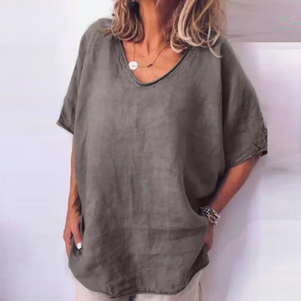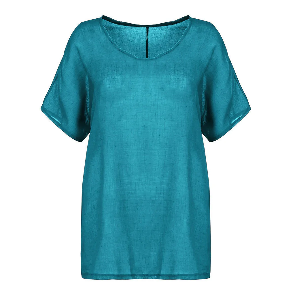 Женская Повседневная летняя Однотонная футболка с круглым вырезом и короткими рукавами размера плюс