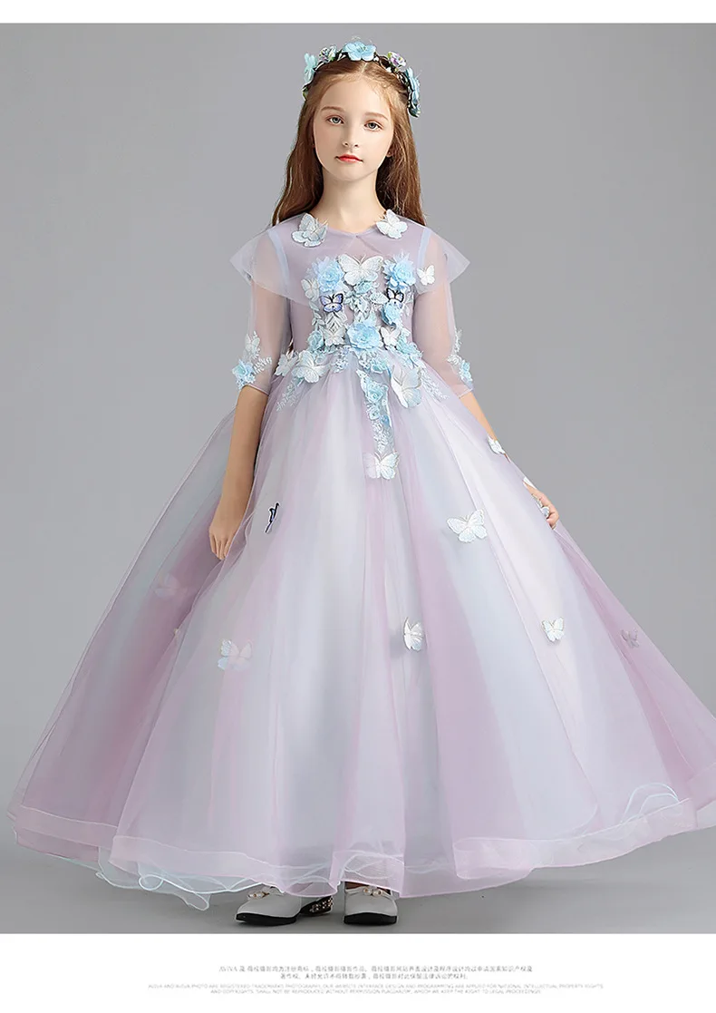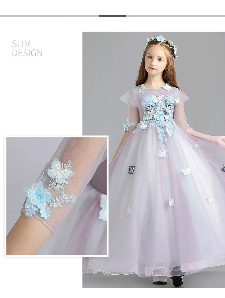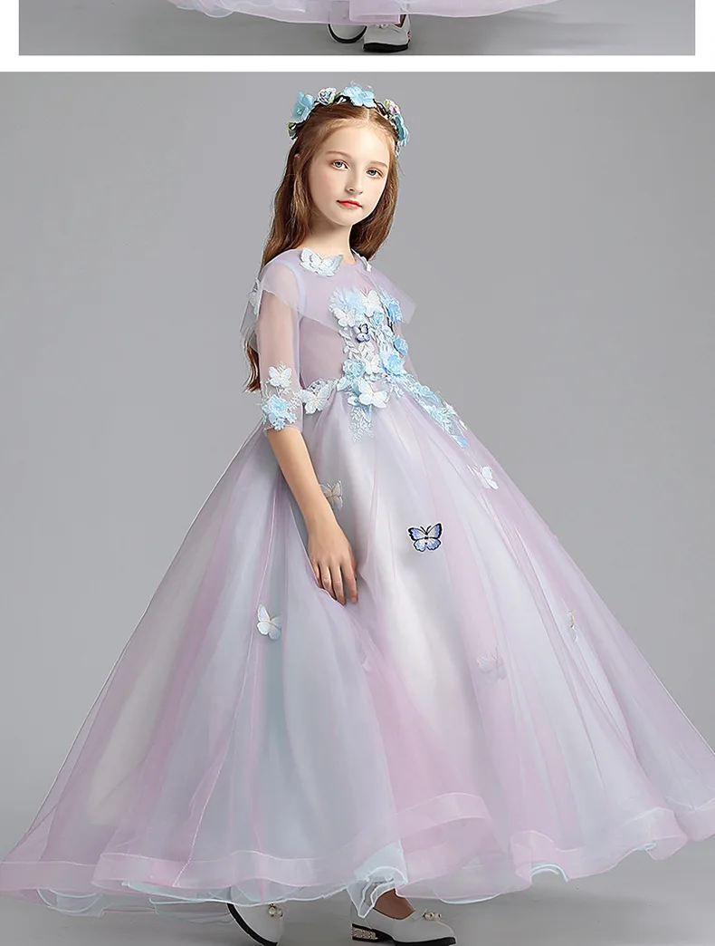 Flower Girl Dress Elegant Appliques First Communion Kids Children Pageant Prom Wedding Party Gown Girl Princess Long Dresses
